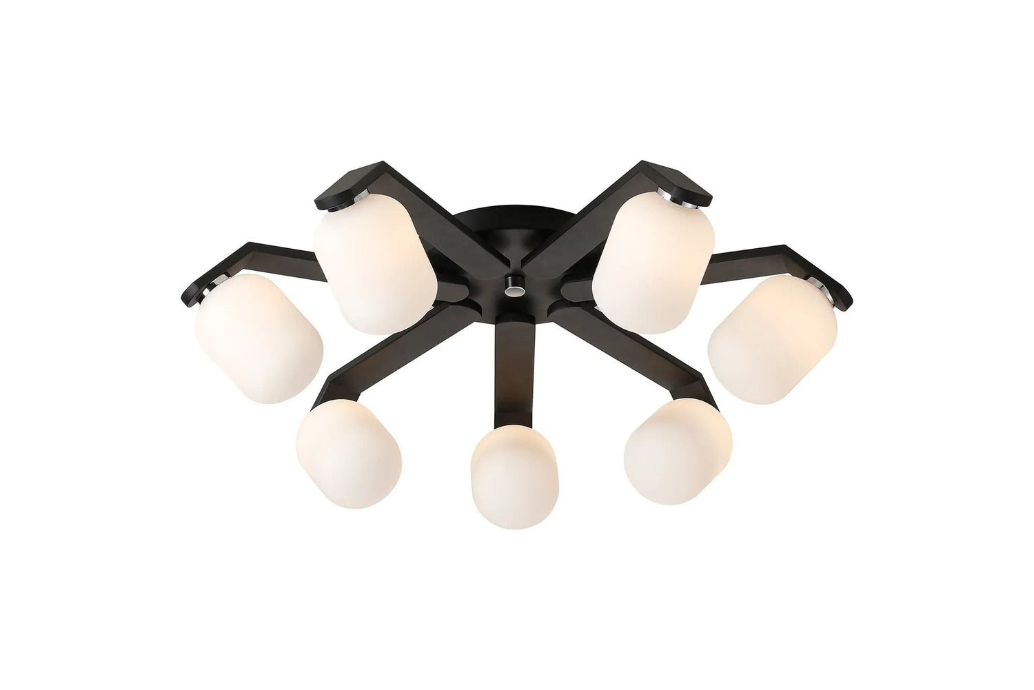 Bellingham Flush Ceiling, 8 x G9, IP44, Black/Polished Chrome/Opal Smooth Tubular Glass