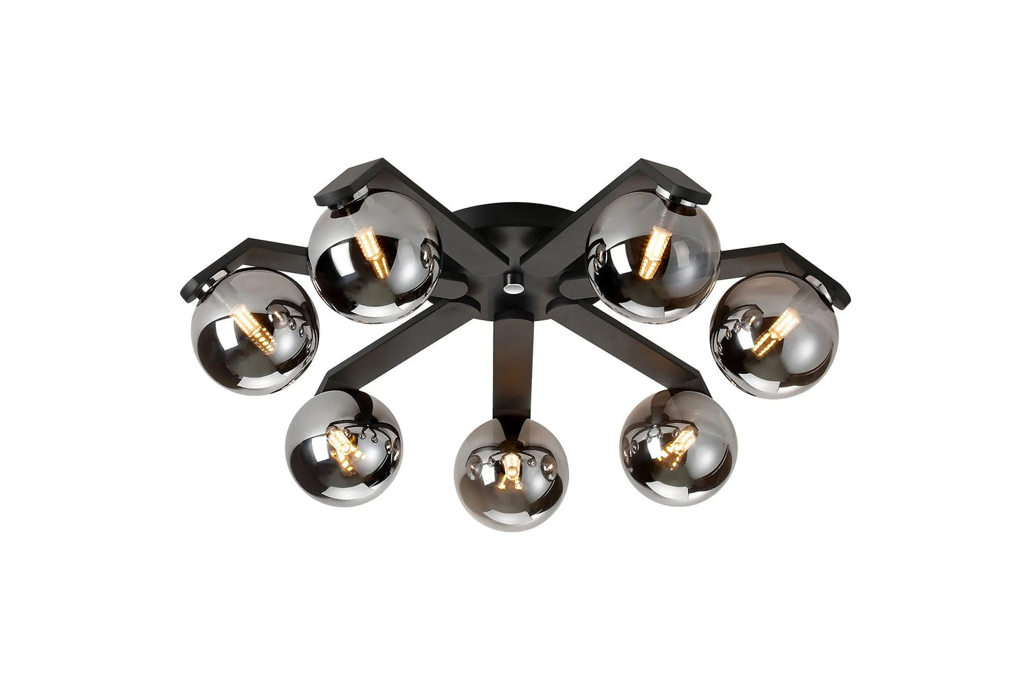 Bellingham Flush Ceiling, 8 x G9, IP44, Black/Polished Chrome/Smoke Smooth Round Glass