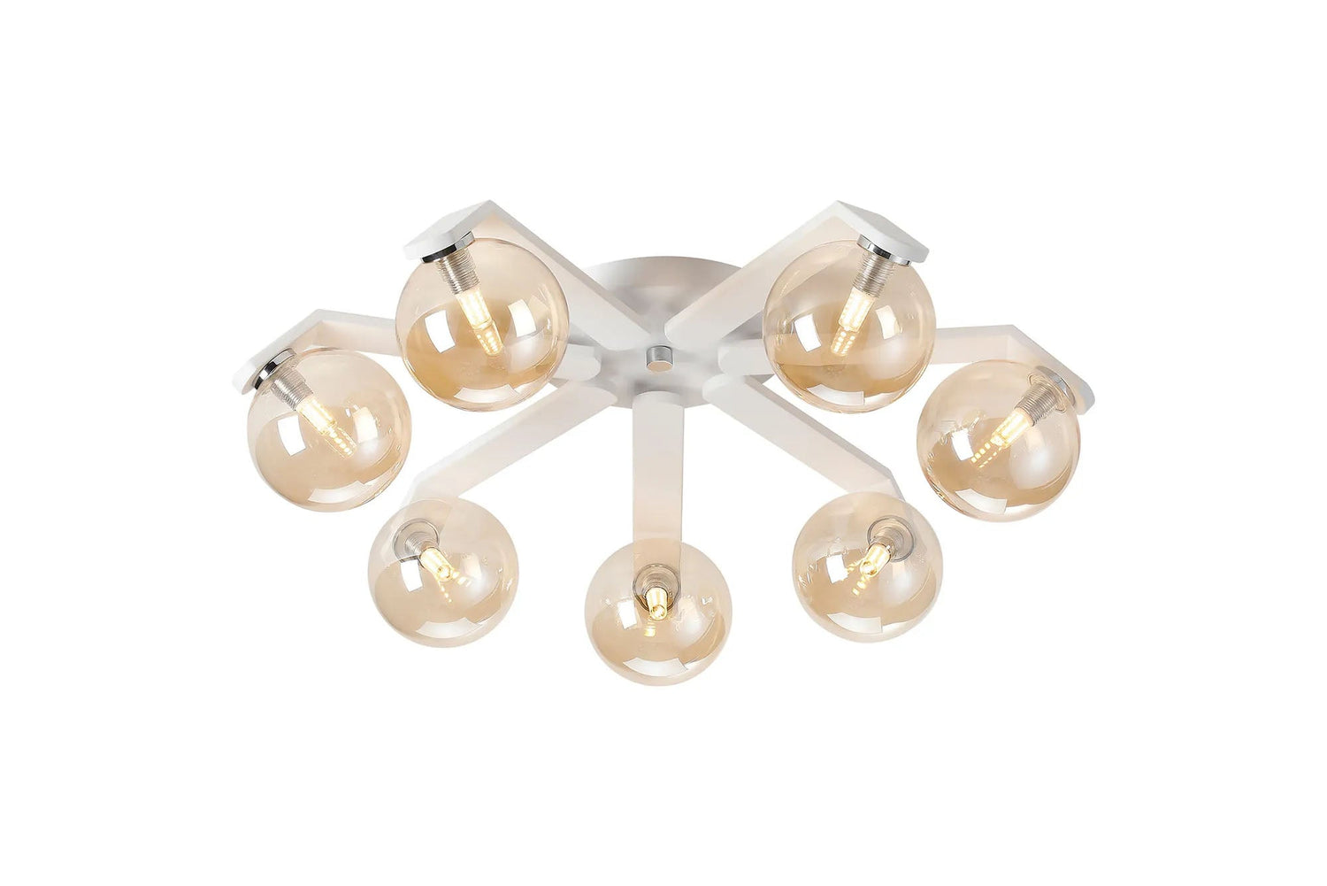 Bellingham Flush Ceiling, 8 x G9, IP44, White/Polished Chrome/Amber Smooth Round Glass