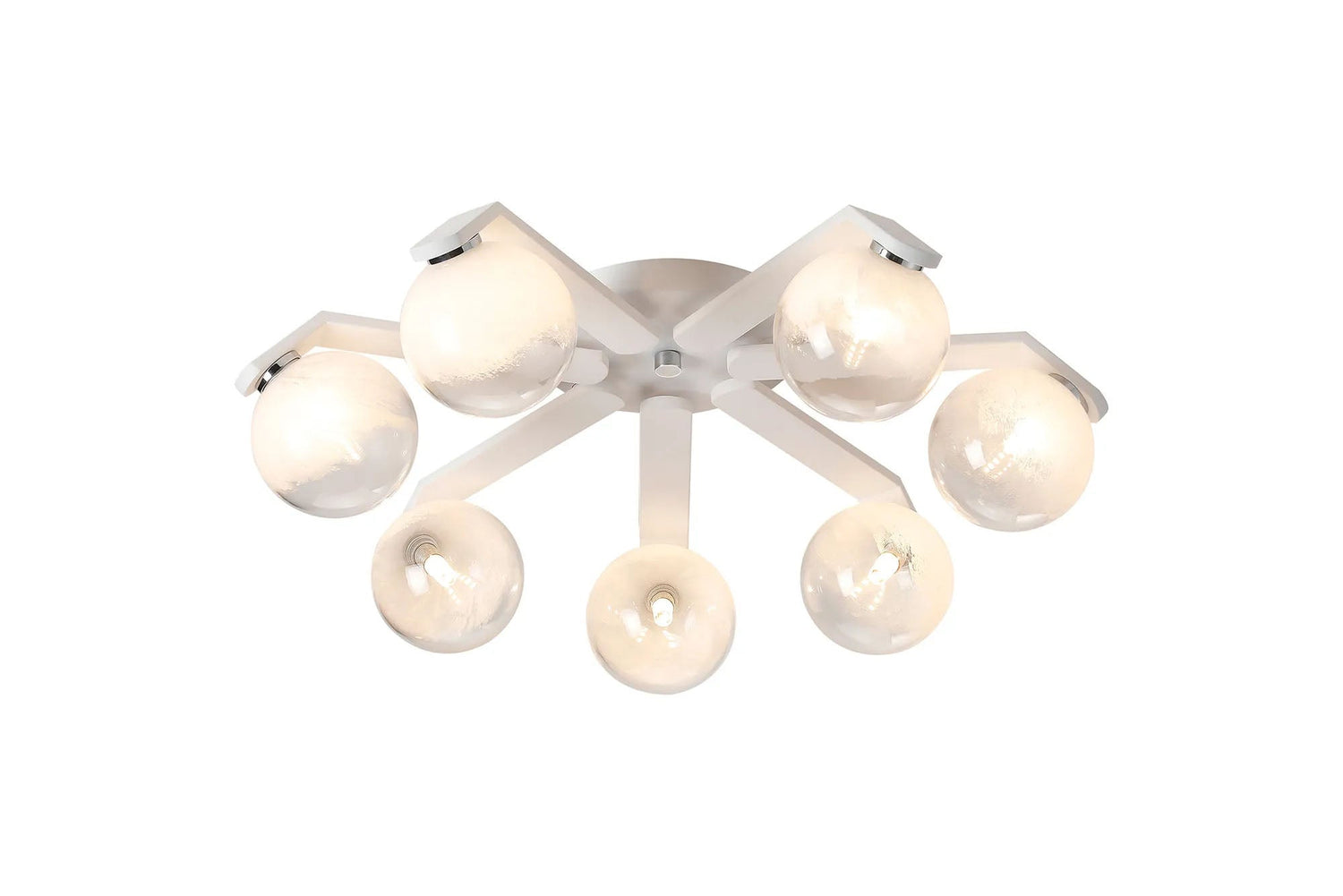 Bellingham Flush Ceiling, 8 x G9, IP44, White/Polished Chrome/White Two-Tone Snow Specks Round Glass