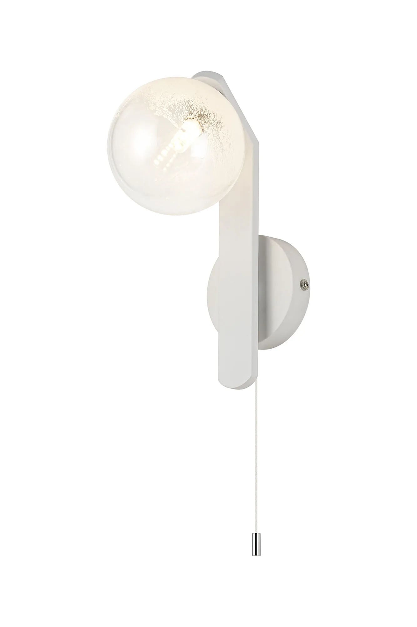 Bellingham Pull Switch Wall Light, 1 x G9, IP44, White/Polished Chrome/White Two-Tone Snow Specks Round Glass