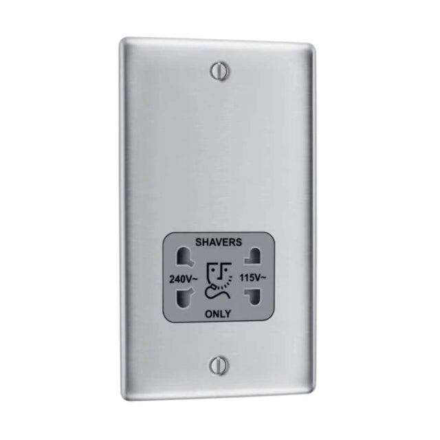BG NBS20G Nexus Metal Brushed Steel, Shaver Socket, Dual Voltage 115/240V, Grey Insert