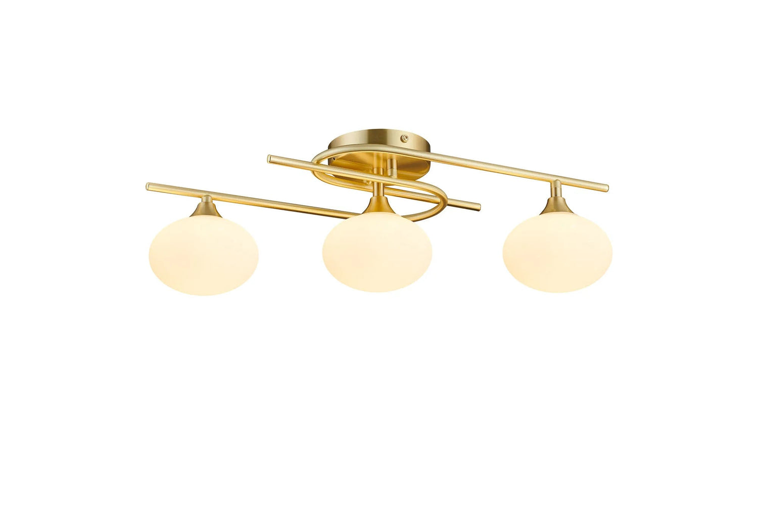 Cherry Flush Ceiling, 3 x G9, IP44, Satin Brass/Opal Glass