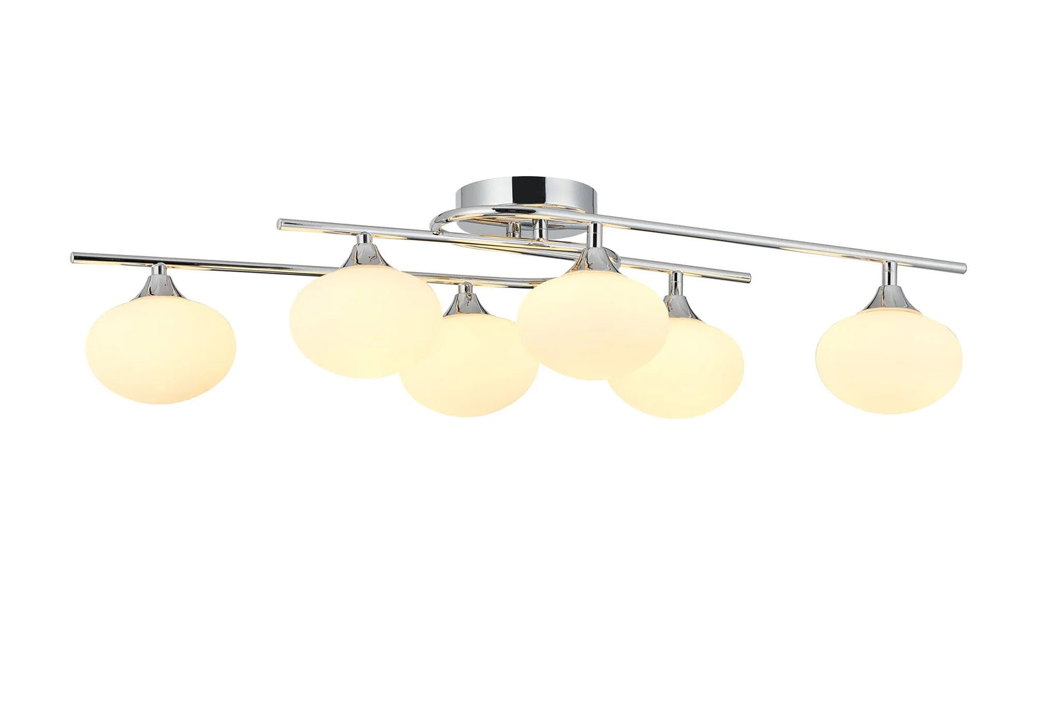 Cherry Flush Ceiling, 6 x G9, IP44, Polished Chrome/Opal Glass