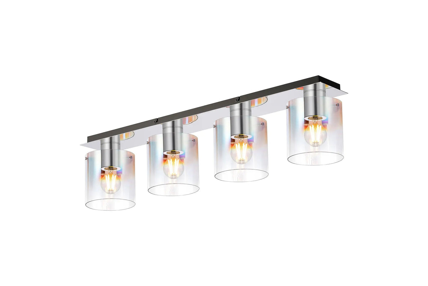 Chisholm Linear Ceiling Flush, 4 Light Flush Fitting, Polished Nickel/Black/Iridescent Fade Glass