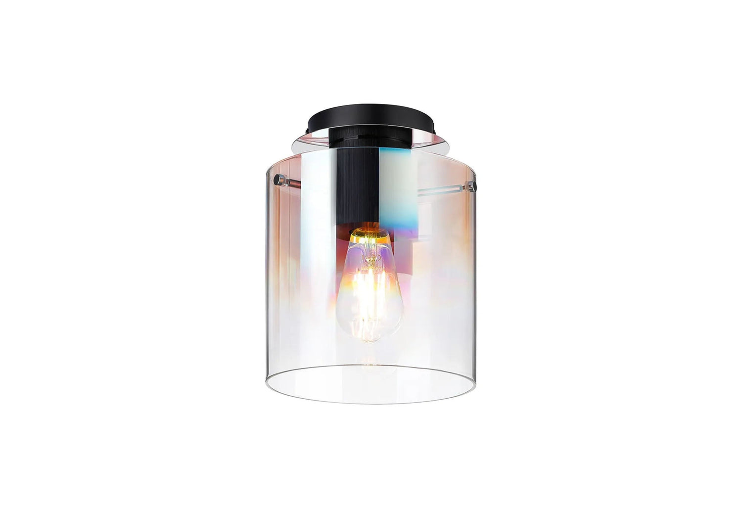 Chisholm Round Ceiling Flush, 1 Light Flush Fitting E27, Black/Iridescent Fade Glass