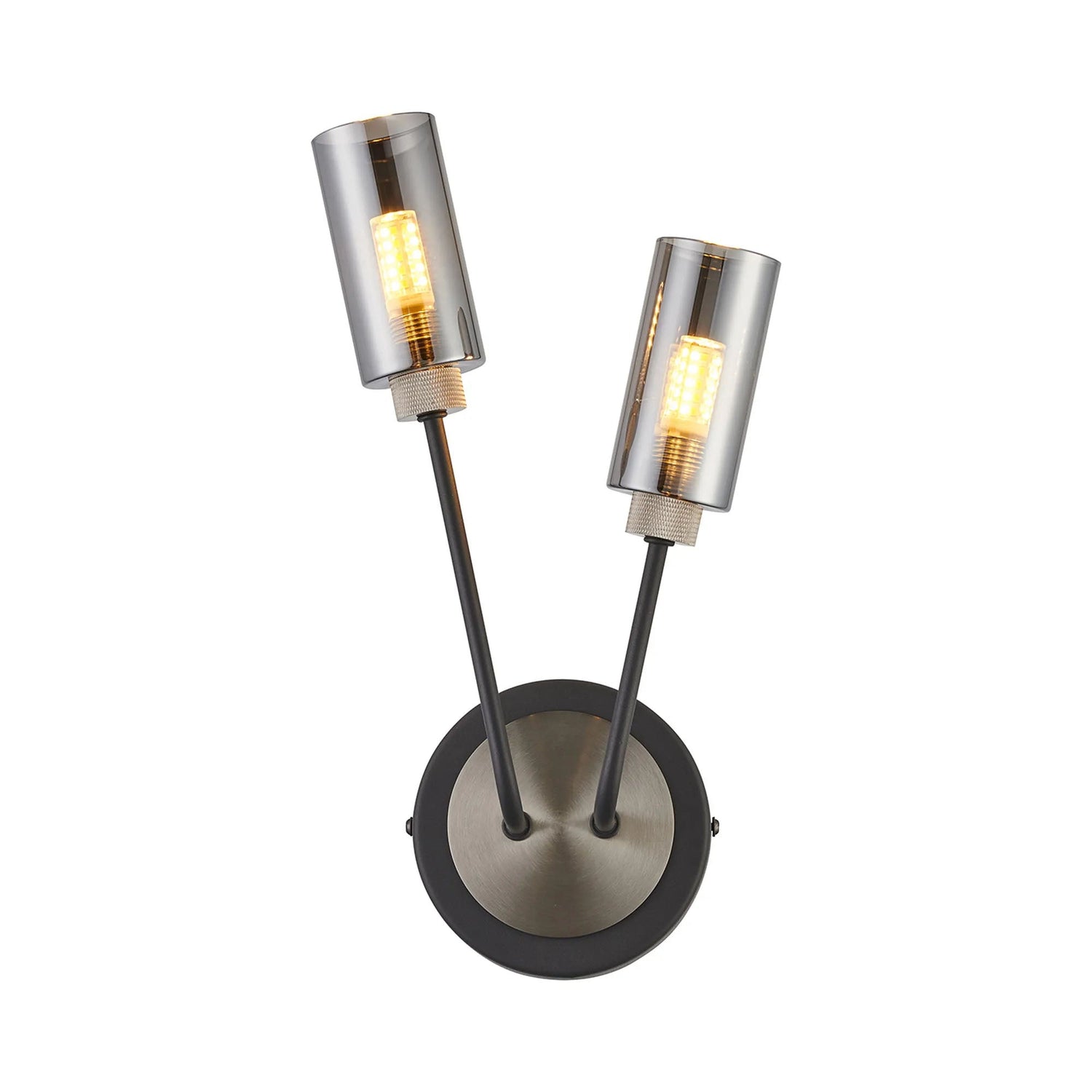 Clamp Wall Lamp, 2 x G9, Anthracite/Satin Nickel/Smoked Glass