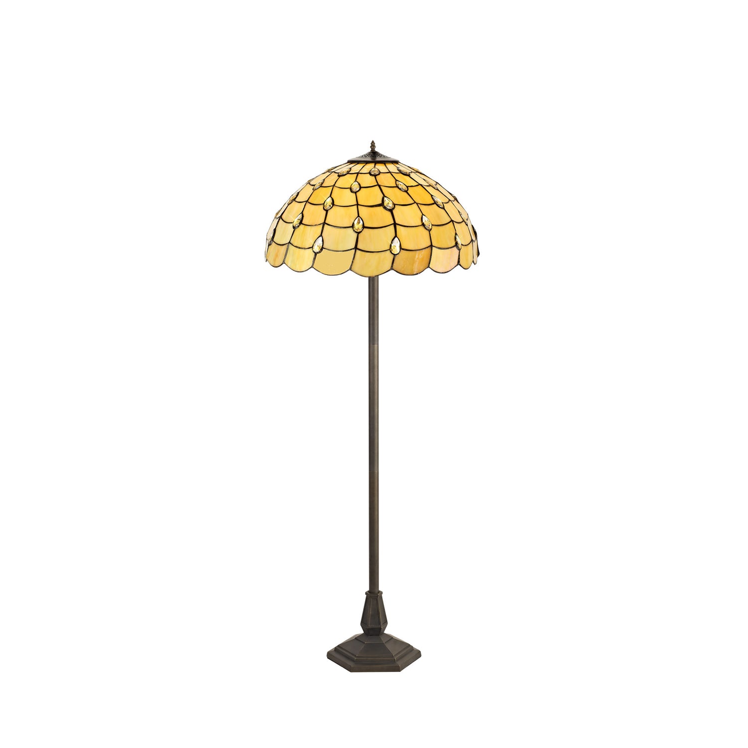Finney 2 Light Octagonal Floor Lamp E27 With 50cm Tiffany Shade, Beige/Clear Crystal/Aged Antique Brass