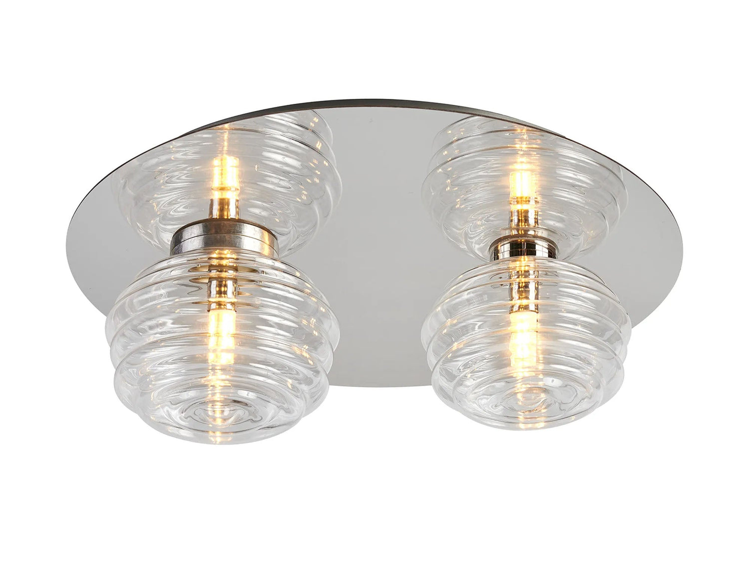 Hunt Round 2 Light Flush With 160mm & 180mm Glass, Polished Nickel/Clear