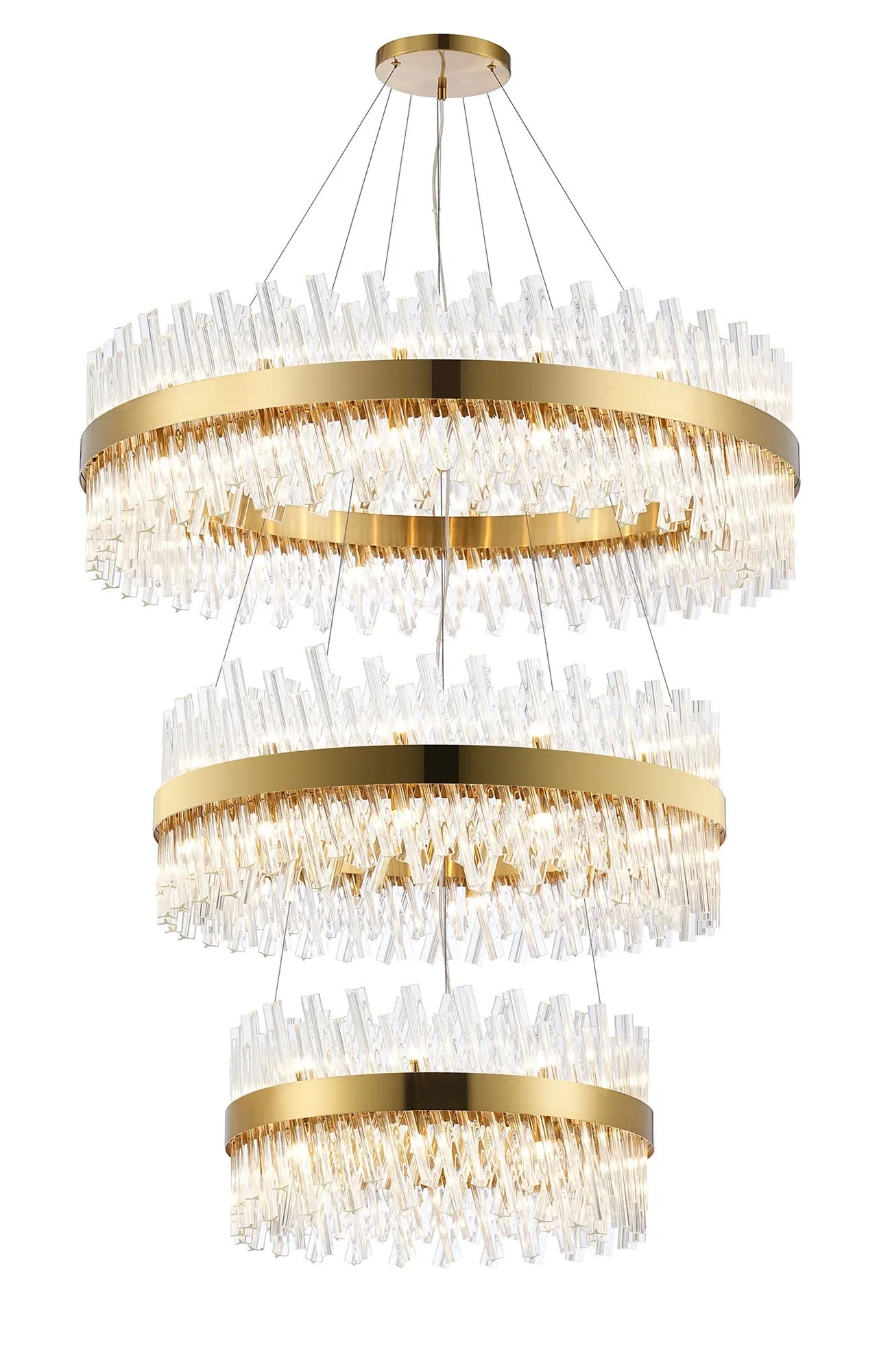 Melville 3 Tier 60cm + 80cm + 1m Pendant, 18 + 24 + 32 Light G9, Brass/Clear