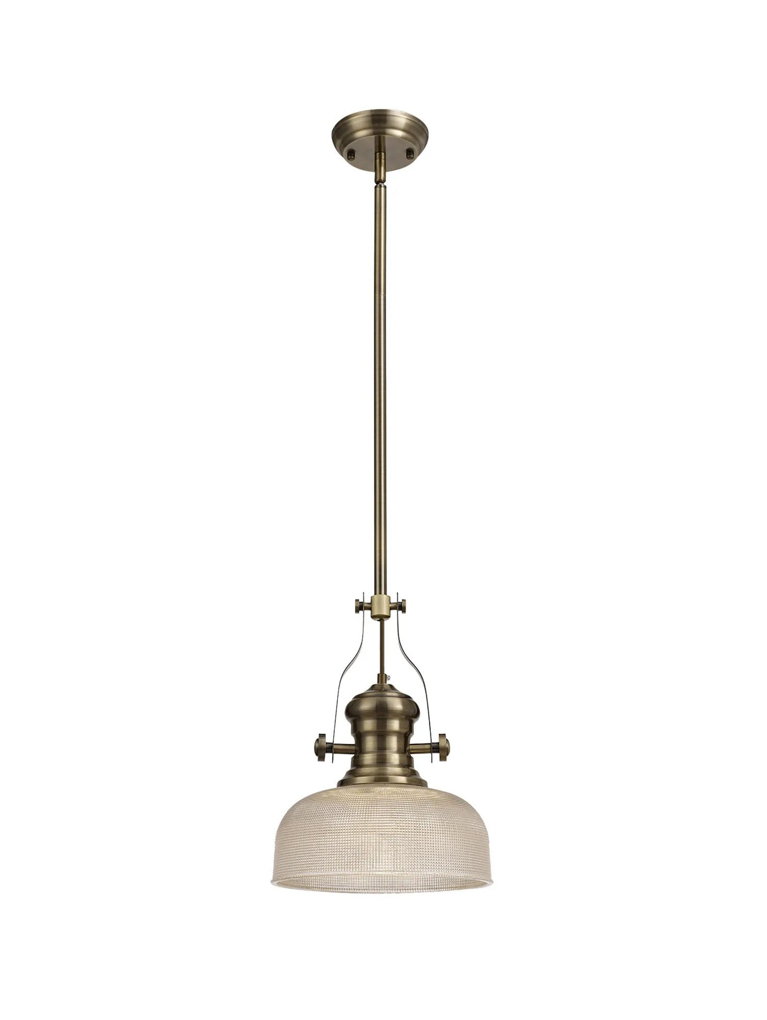 Munro 1 Light Multi Height Pendant E27 With 26.5cm Prismatic Glass Shade, Antique Brass/Clear