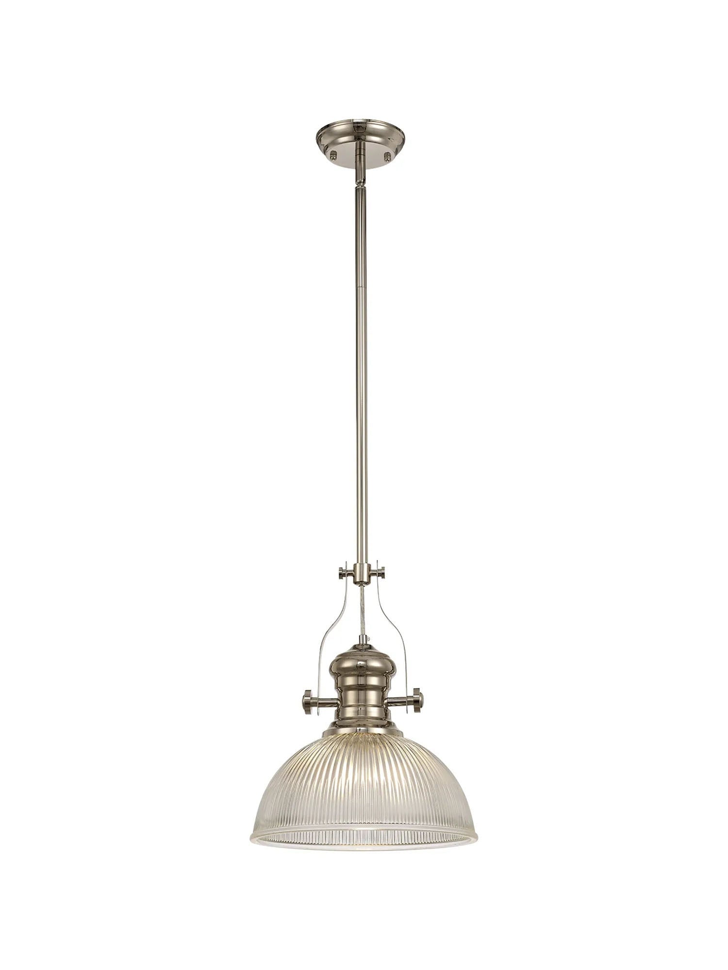 Munro 1 Light Multi Height Pendant E27 With 30cm Dome Glass Shade, Polished Nickel/Clear