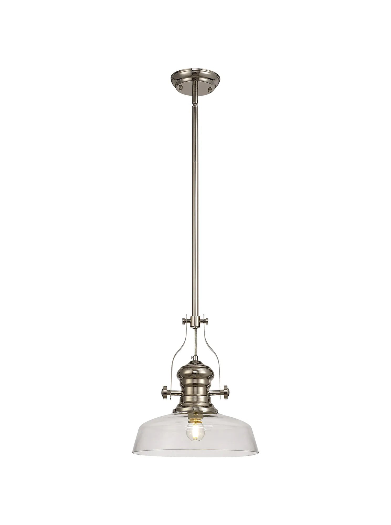 Munro 1 Light Multi Height Pendant E27 With 30cm Flat Round Glass Shade, Polished Nickel/Clear