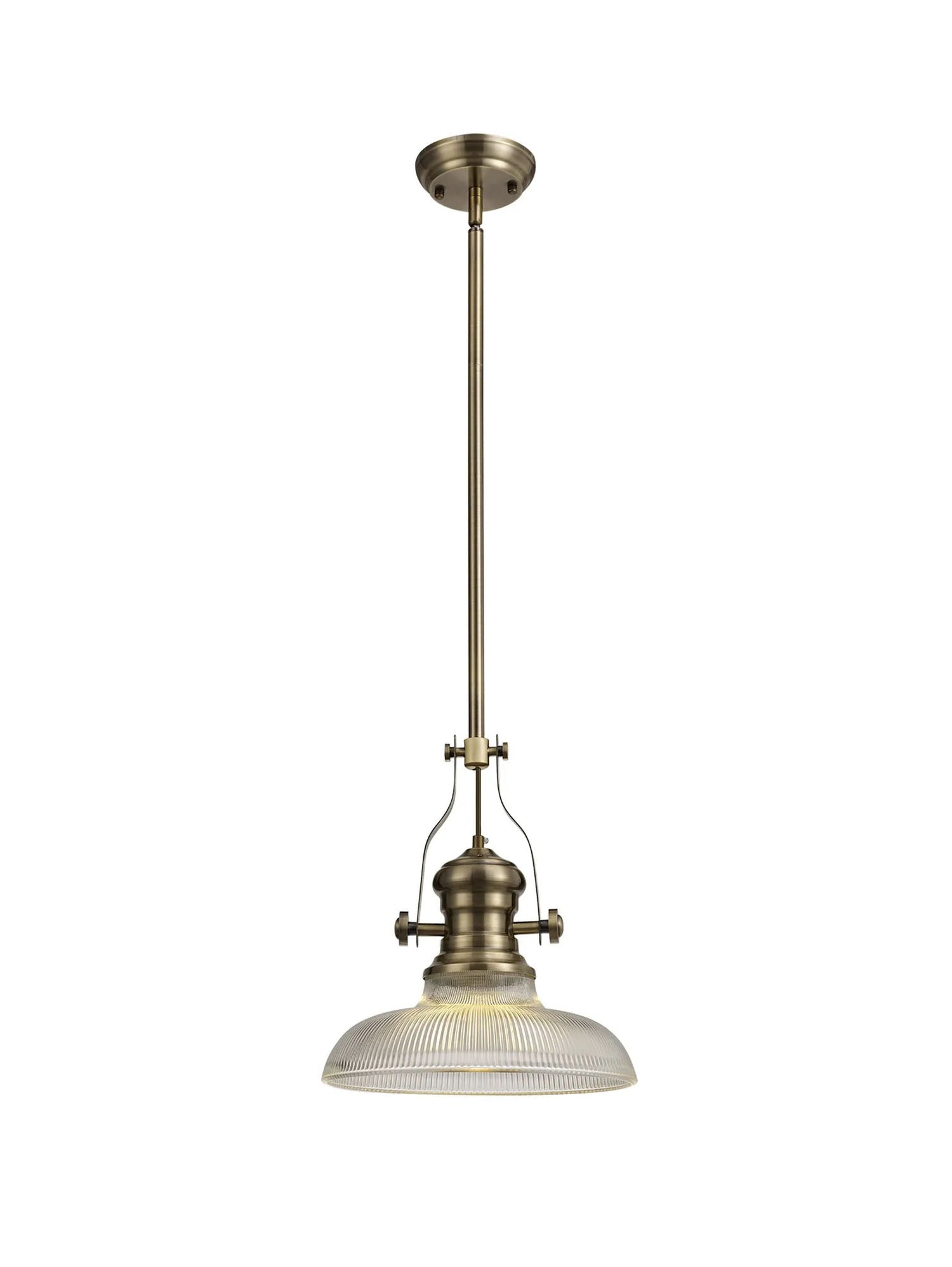 Munro 1 Light Multi Height Pendant E27 With 30cm Round Glass Shade, Antique Brass/Clear