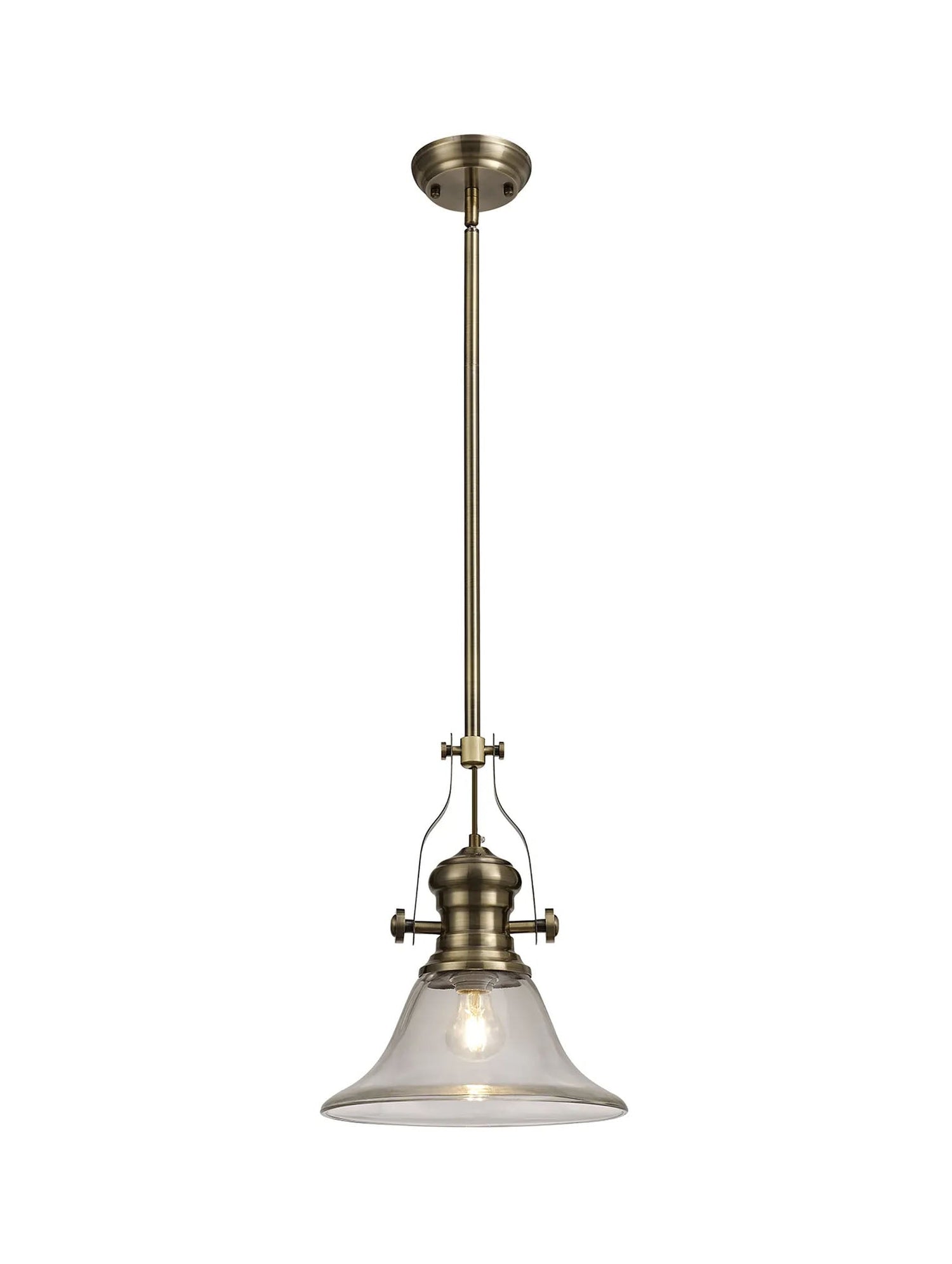 Munro 1 Light Multi Height Pendant E27 With 30cm Smooth Bell Glass Shade, Antique Brass/Clear