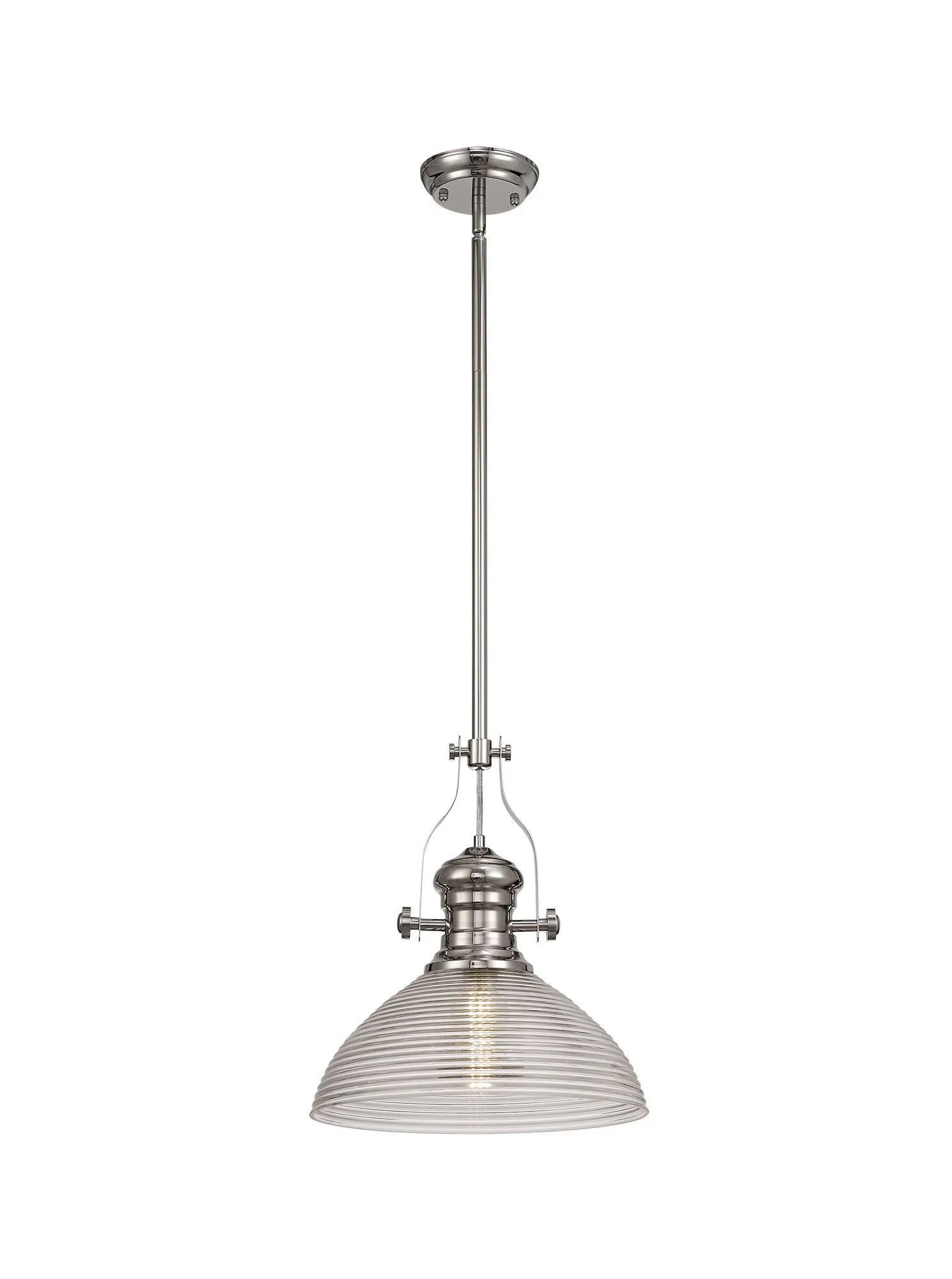 Munro 1 Light Multi Height Pendant E27 With 33.5cm Prismatic Glass Shade, Polished Nickel/Clear