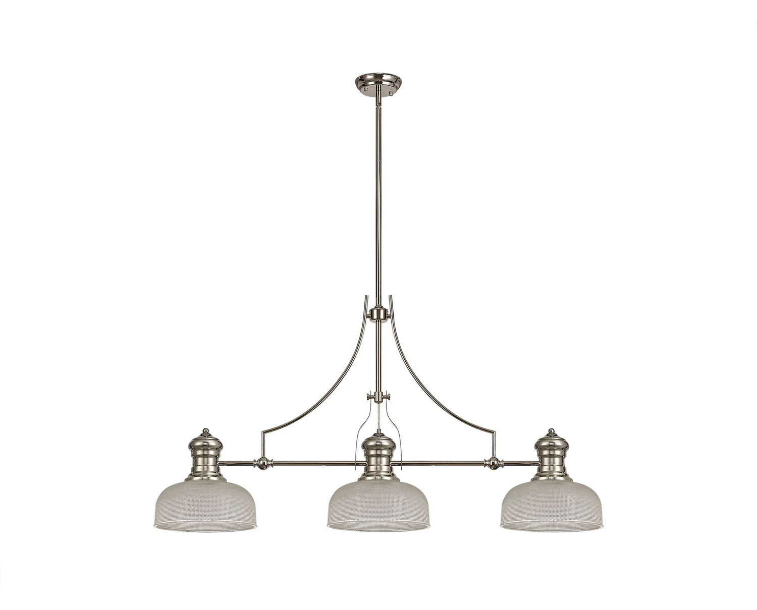 Munro 3 Light Linear Multi Height Pendant E27 With 26.5cm Prismatic Glass Shade, Polished Nickel, Clear