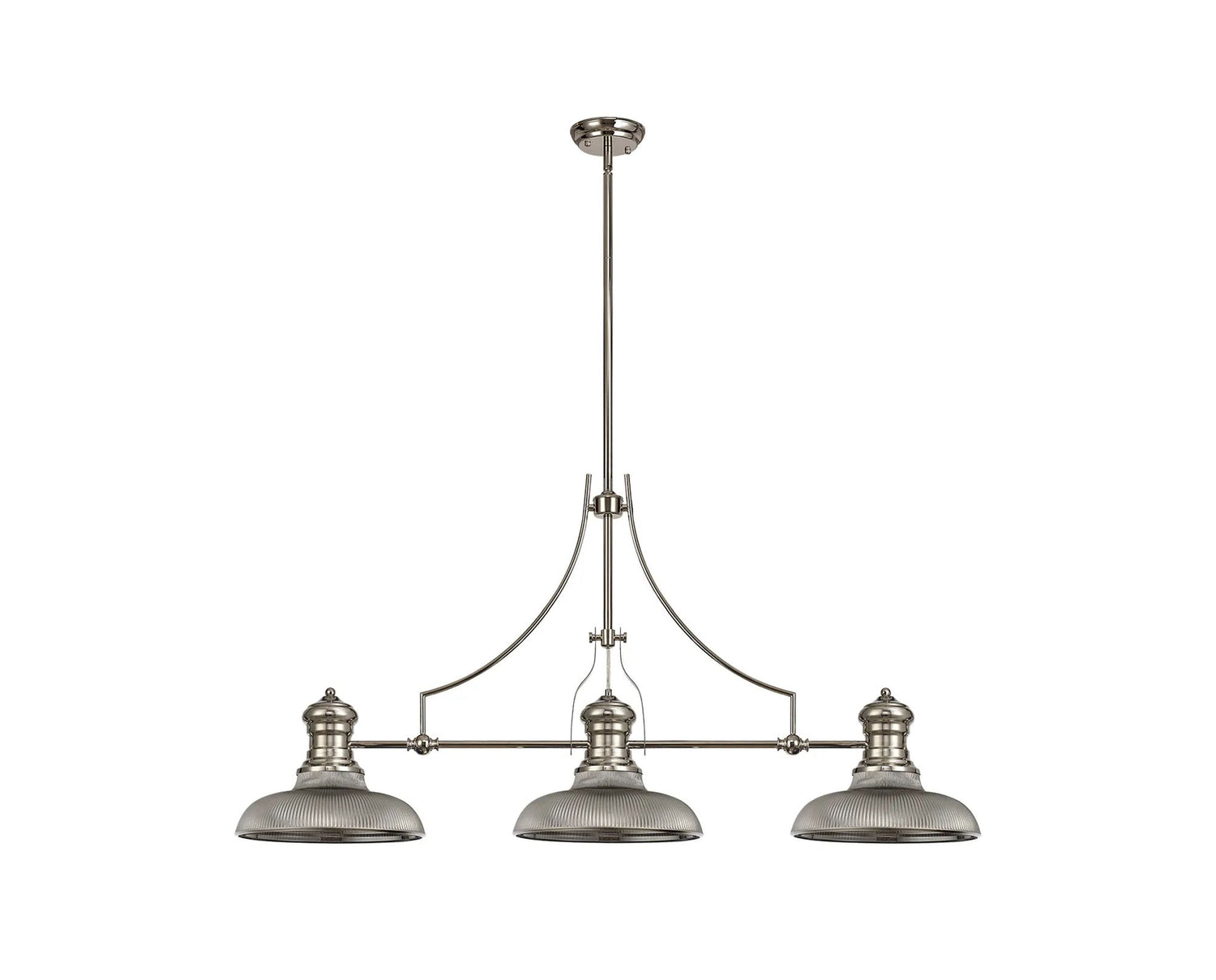 Munro 3 Light Linear Multi Height Pendant E27 With 30cm Round Glass Shade, Polished Nickel, Smoked