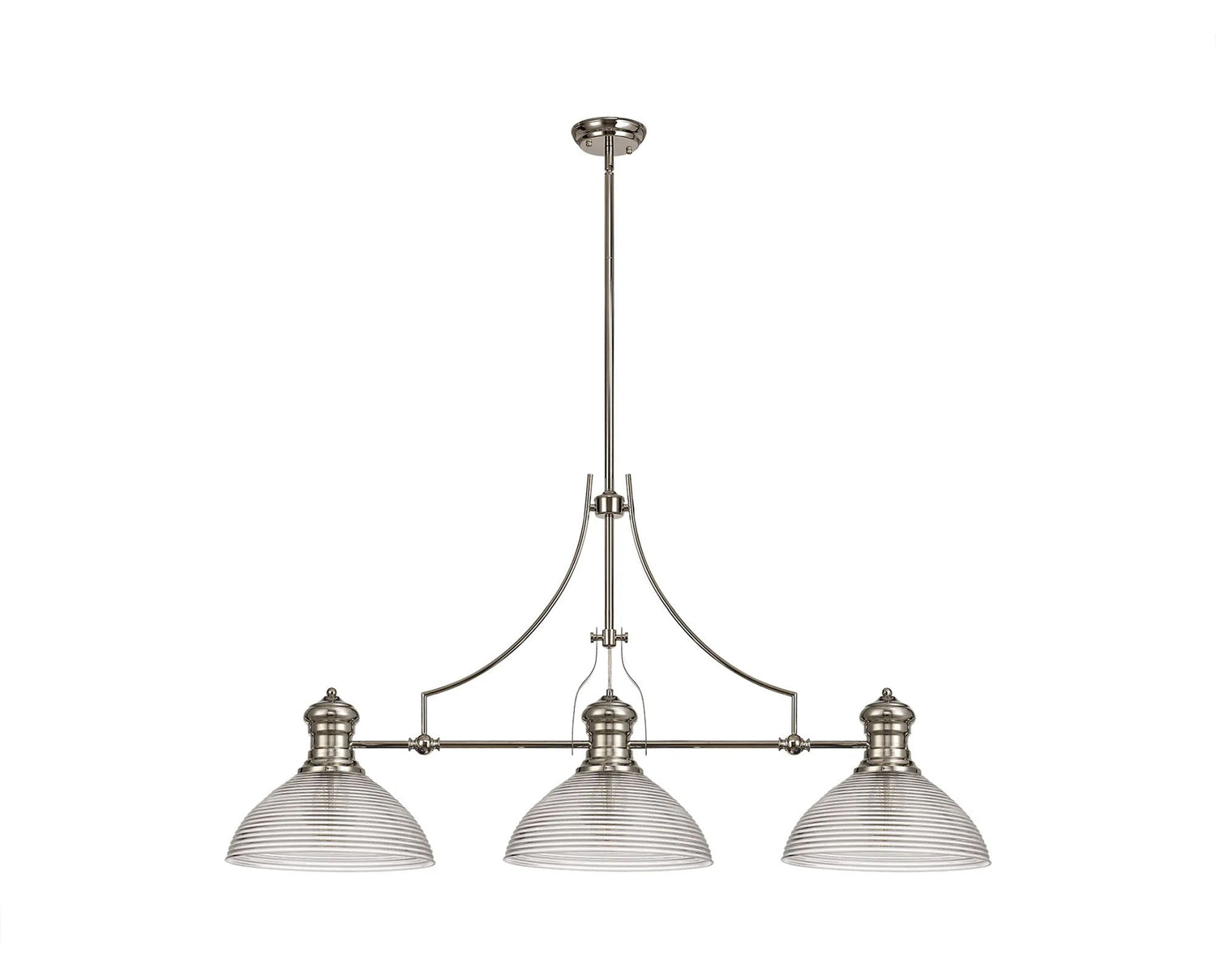 Munro 3 Light Linear Multi Height Pendant E27 With 33.5cm Prismatic Glass Shade, Polished Nickel, Clear