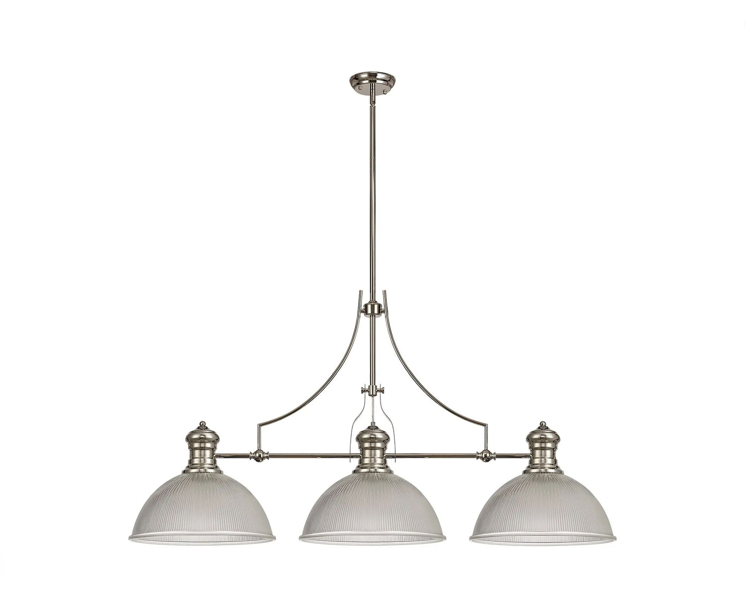 Munro 3 Light Linear Multi Height Pendant E27 With 38cm Dome Glass Shade, Polished Nickel, Clear