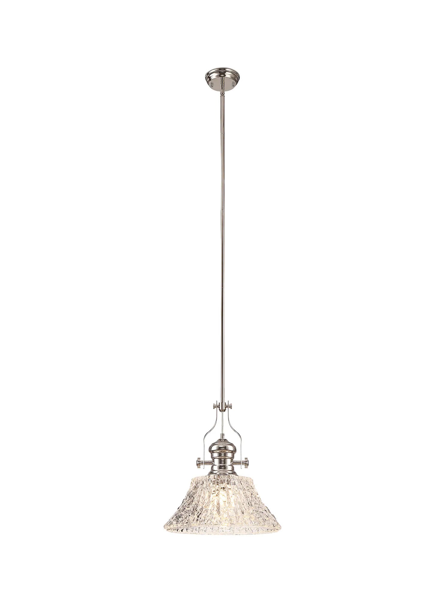 Munro Multi Height Pendant With 38cm Patterned Round Shade, 1 x E27, Polished Nickel/Clear Glass