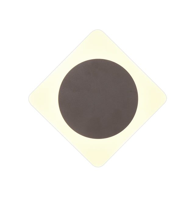 Proctor Magnetic Base Wall Lamp, 12W LED 3000K 498lm, 15cm Round 19cm Diamond Centre, Coffee/Acrylic Frosted Diffuser