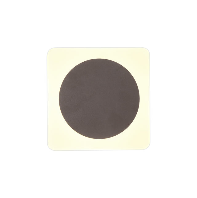 Proctor Magnetic Base Wall Lamp, 12W LED 3000K 498lm, 15cm Round 19cm Square Centre, Coffee/Acrylic Frosted Diffuser