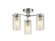 Prudhoe Semi Flush Light, 3 x E14, Polished Chrome/Crystal/Glass