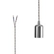 Robson E27 (Max 60W) Lampholder Chrome With 3m Silver Braided Twisted Cable & Deeper Shade Ring, Suitable For Shades & Cages