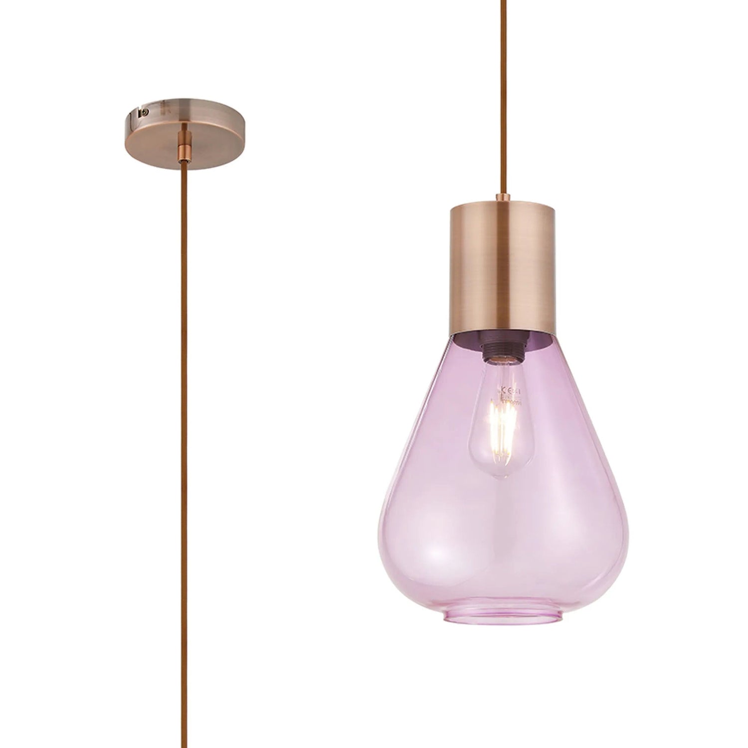Rowell Narrow Pendant, 1 x E27, Antique Copper/Lilac Glass