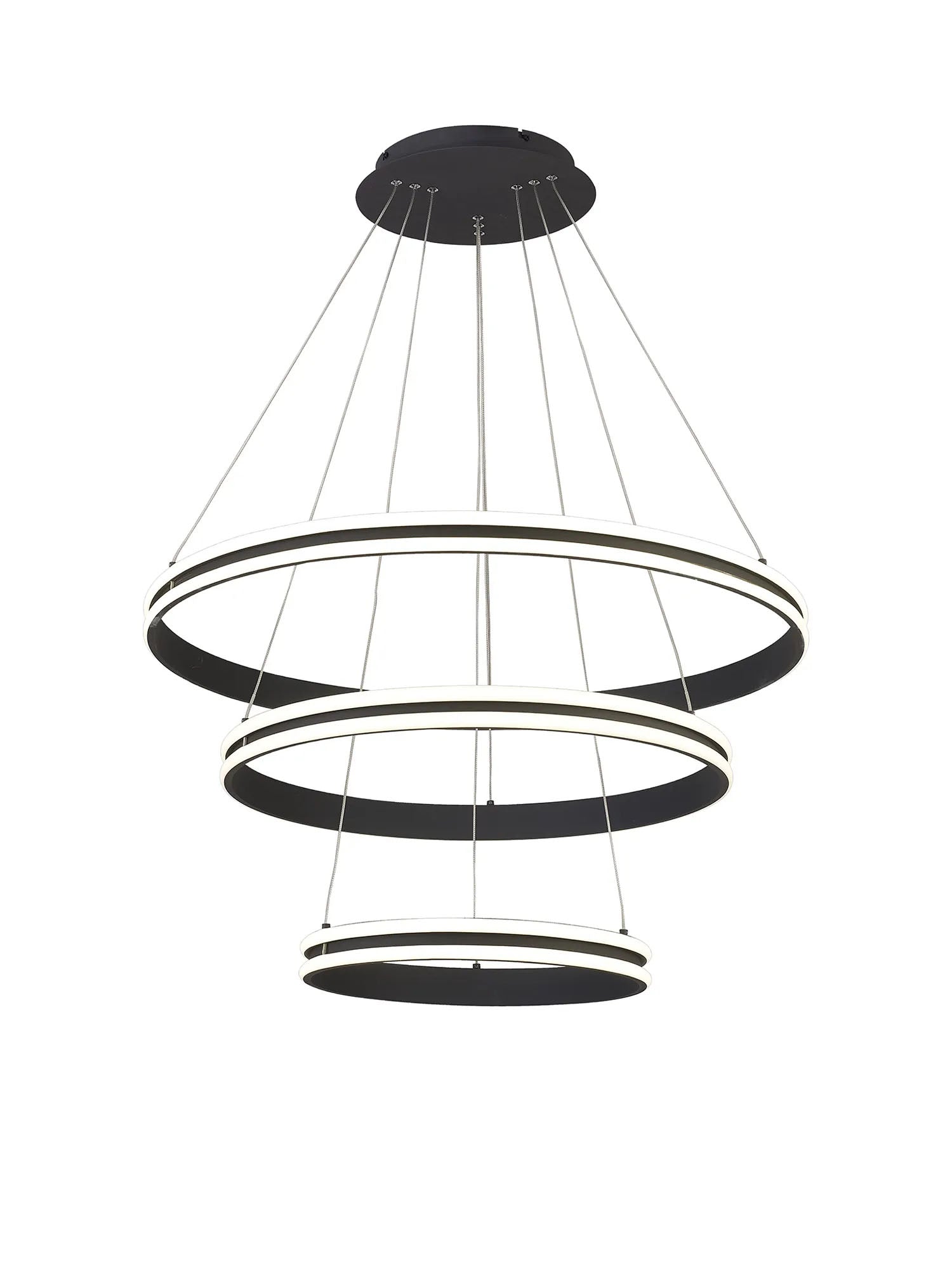 Schwarz Pendant, 3 Light 50W,30W,20W LED, 3500K, Dimmable, Graphite