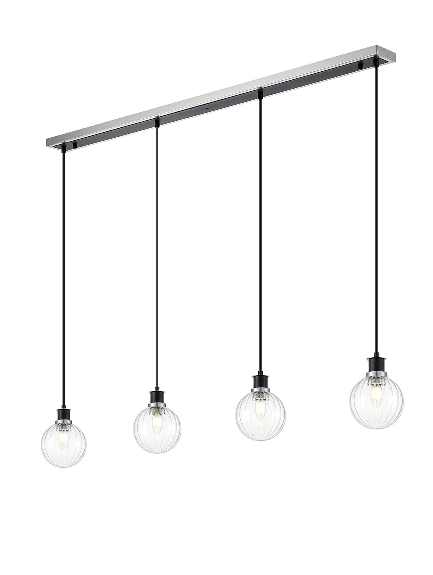 Stevens 1.3m Linear Pendant, 4 x E14 With 15cm Round Segment Glass Shade, Satin Nickel, Clear & Satin Black