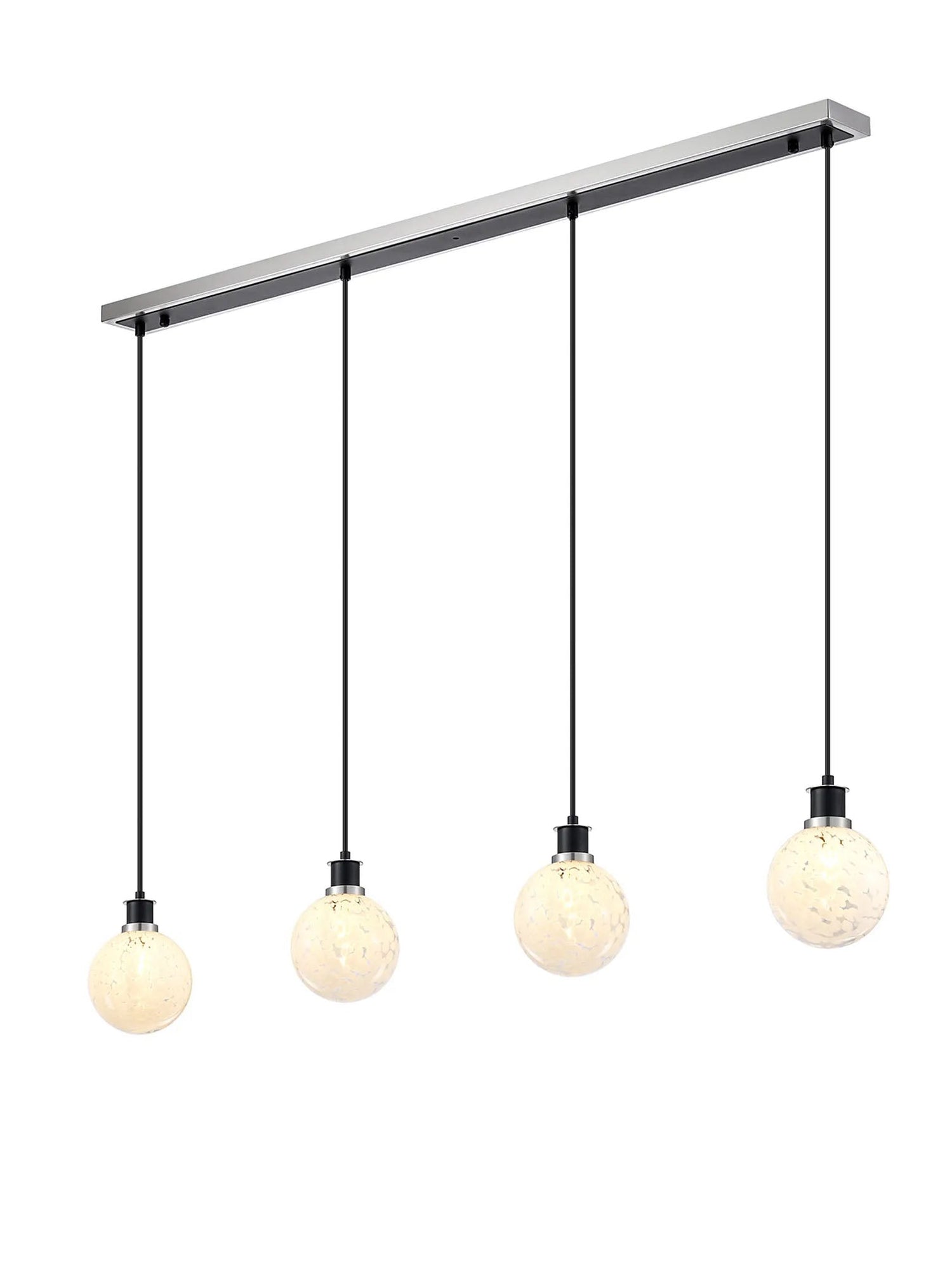 Stevens 1.3m Linear Pendant, 4 x E14 With 15cm Round Speckled Glass Shade, Satin Nickel, White & Satin Black