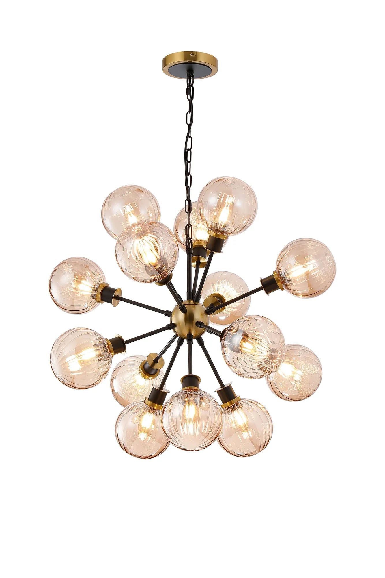 Stevens Pendant, 14 x E14 With 15cm Round Segment Glass Shade, Brass, Amber Plated & Satin Black