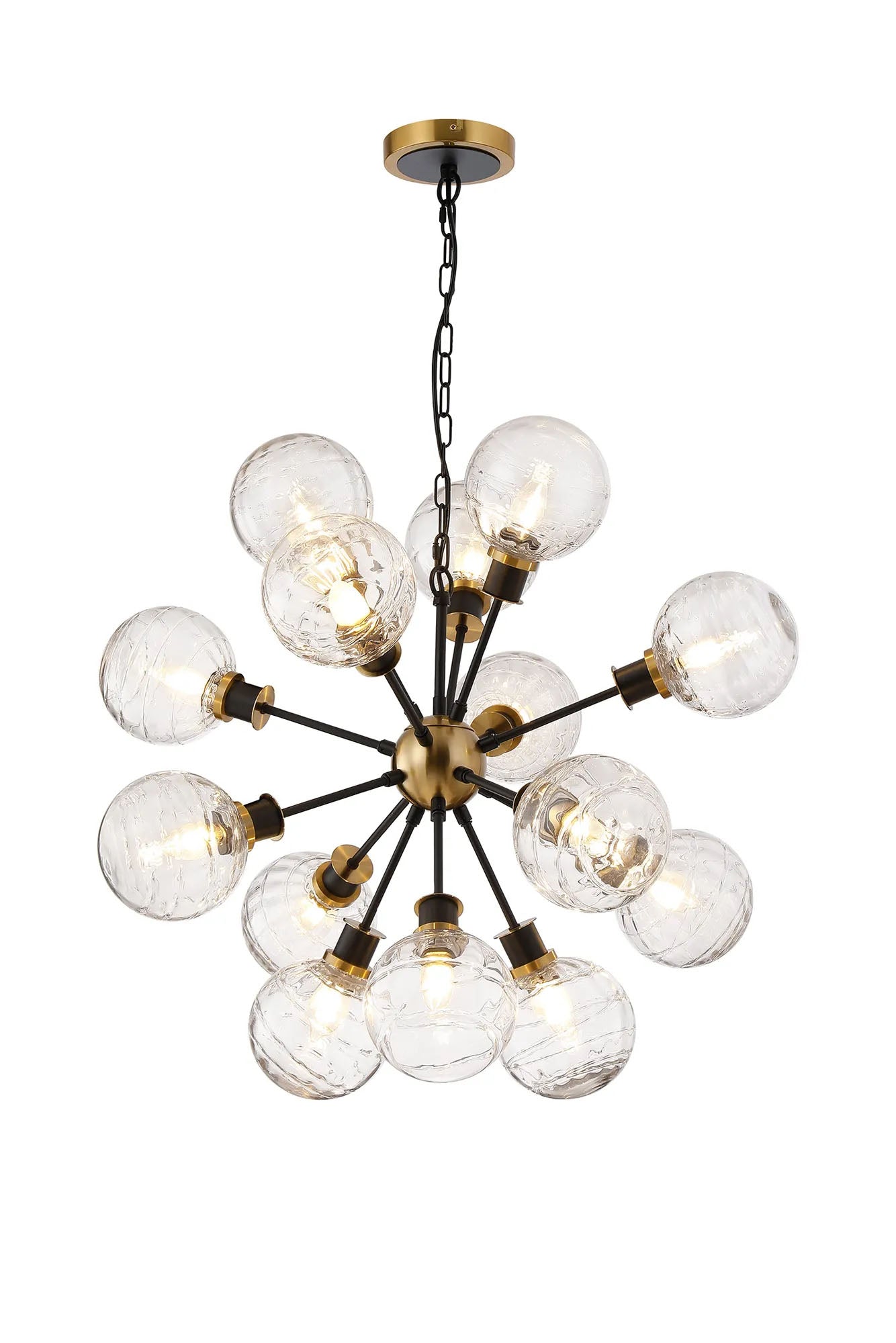 Stevens Pendant, 14 x E14 With 15cm Round Textured Melting Glass Shade, Brass, Clear & Satin Black is backordered and will ship as soon as it is back in stock.