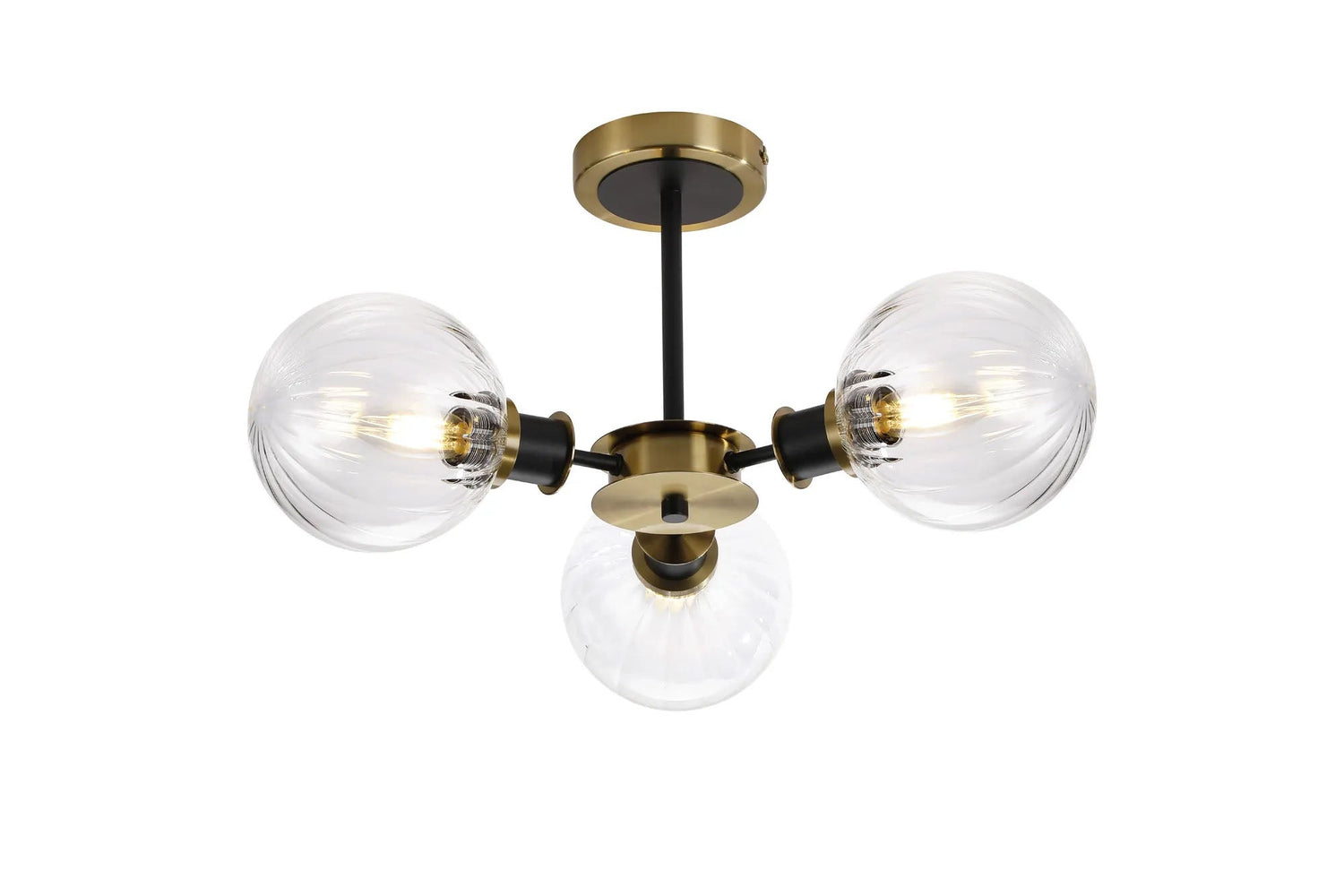 Stevens Semi Ceiling, 3 x E14 With 15cm Round Segment Glass Shade, Brass, Clear & Satin Black