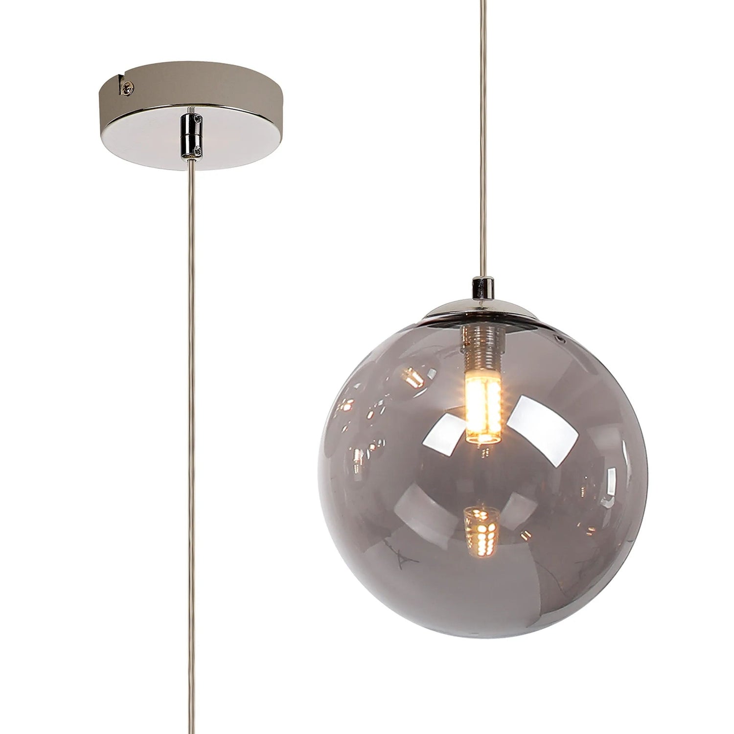 Suggett Single Pendant, 1 x G9, Polished Chrome/Smoke