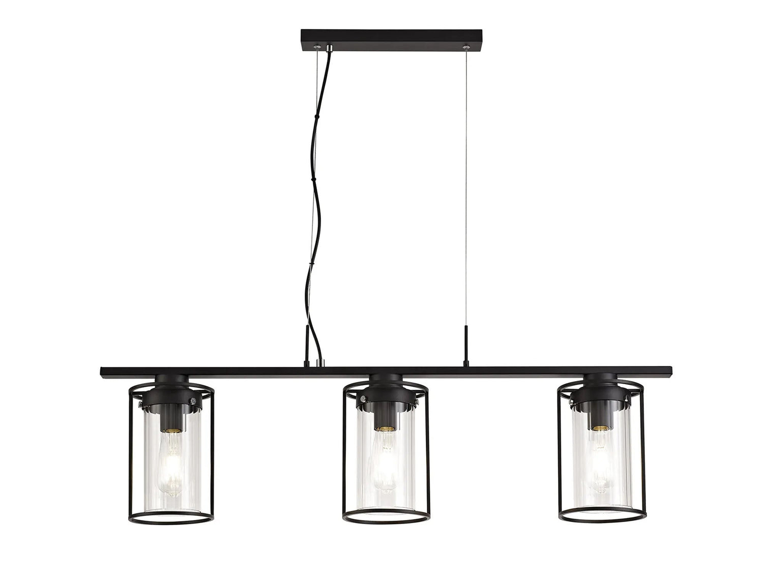 Swinburne Linear Pendant, 3 x E27, Black/Clear Glass