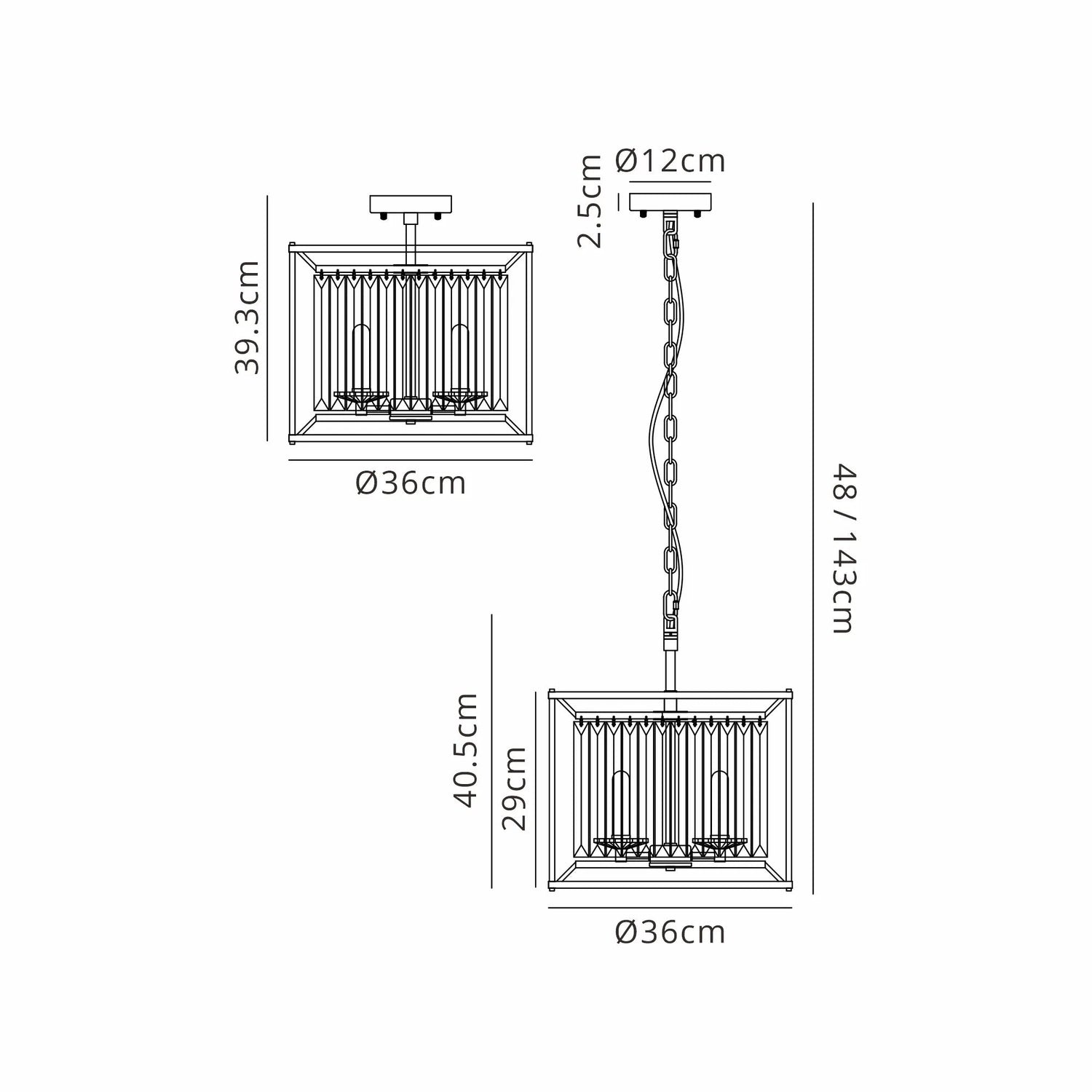 Trian 36cm Pendant / Semi Ceiling Convertible, 3 x G9, IP44, Gold / Clear