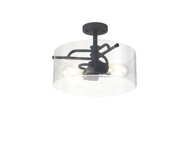 Venison Semi Flush Ceiling, 2 Light E27, Anthracite / Clear Glass