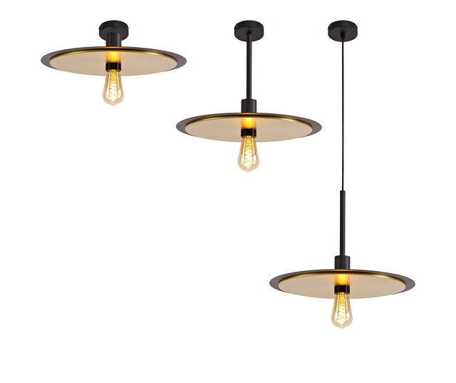 Watts Single 3 In1 Ceiling Flush, Semi Flush & Pendant Light, 1 Light Adjustable E27, Black/Gold