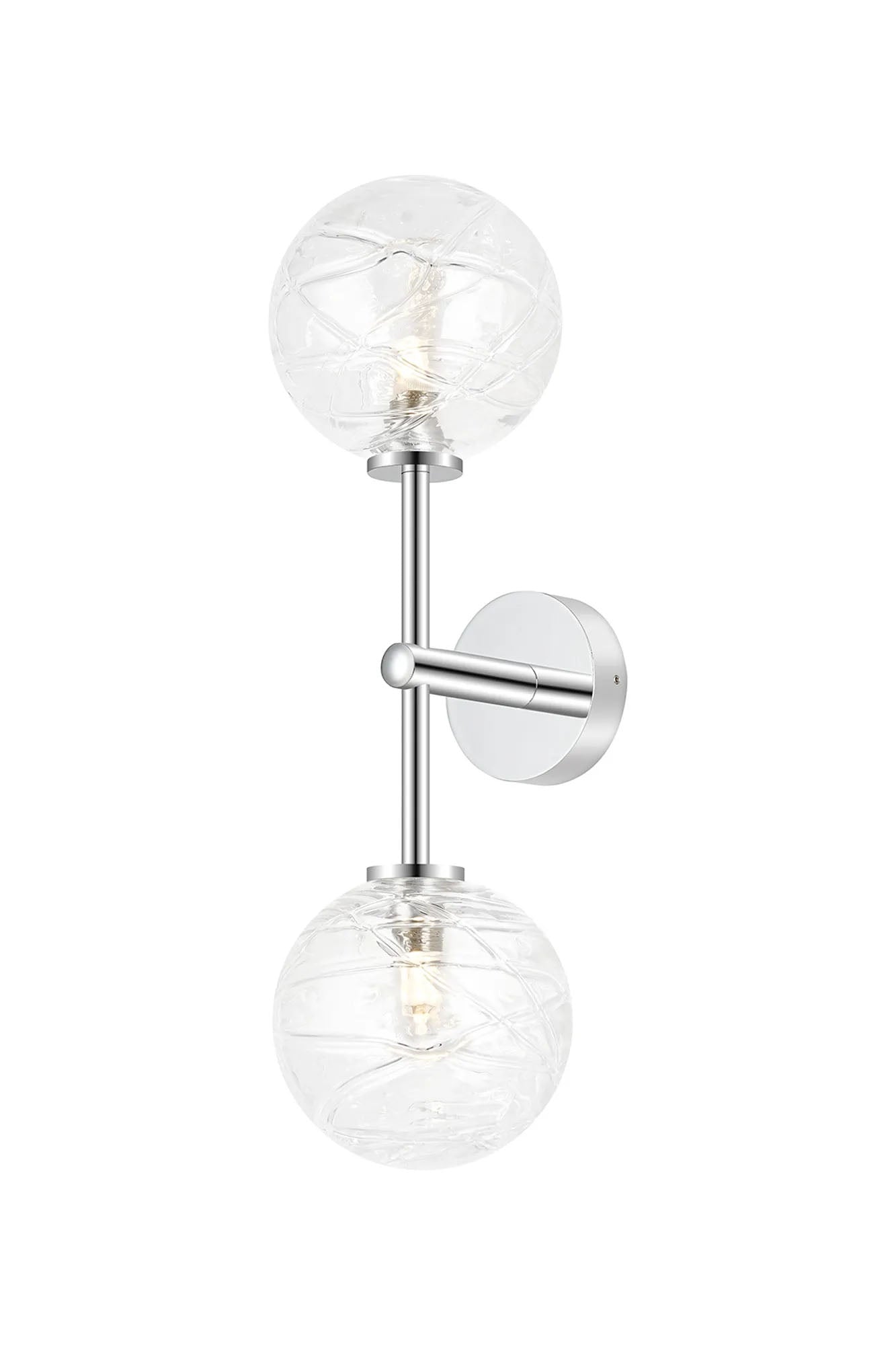 Whitley Medium Arm Wall Lamp 2 Light IP44 Polished Chrome/Clear Dune Effect Round Glass