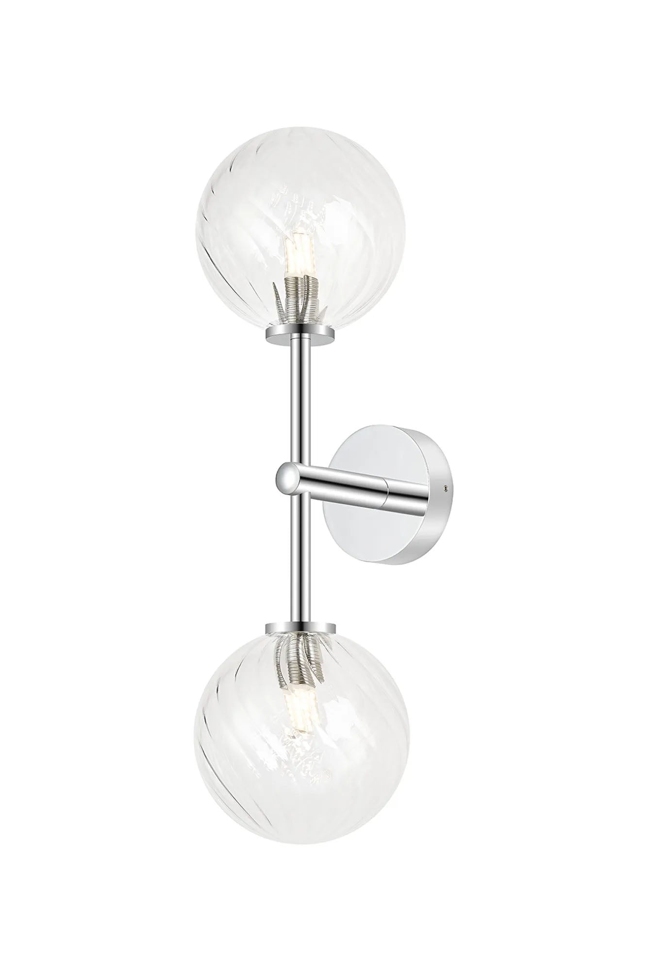 Whitley Medium Arm Wall Lamp 2 Light IP44 Polished Chrome/Clear Swirl Round Glass