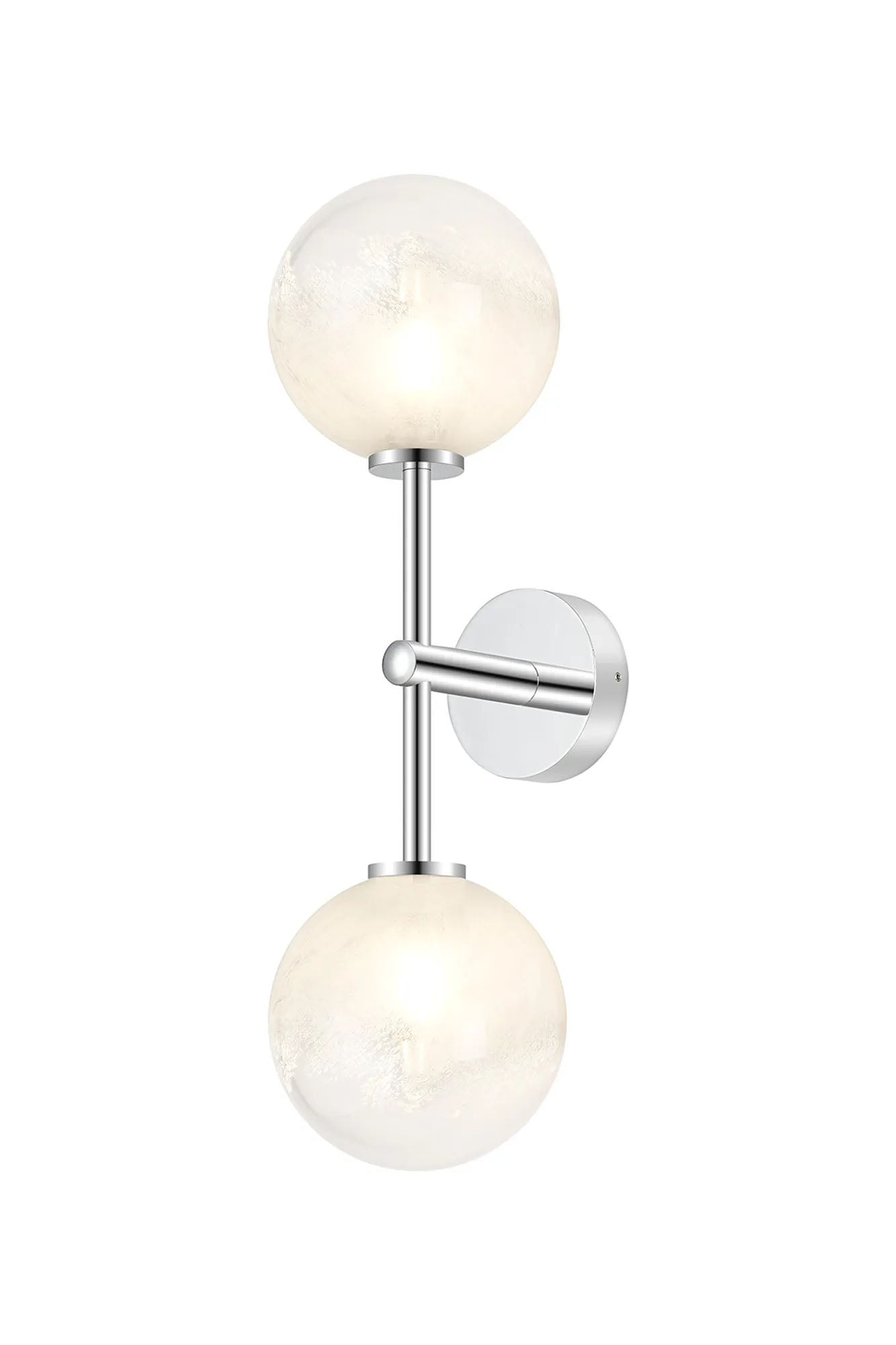 Whitley Medium Arm Wall Lamp 2 Light IP44 Polished Chrome/White Two-Tone Snow Specks Round Glass