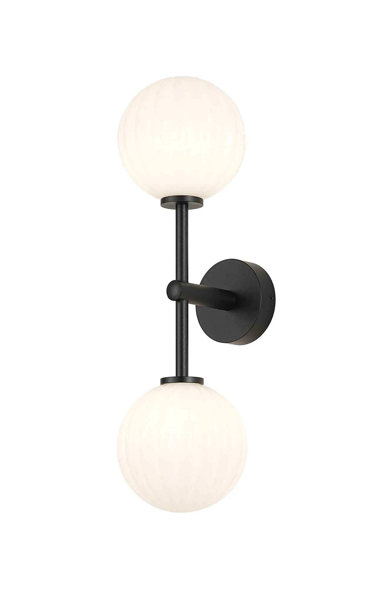 Whitley Medium Arm Wall Lamp 2 Light IP44 Satin Black/Opal Round Segment Glass