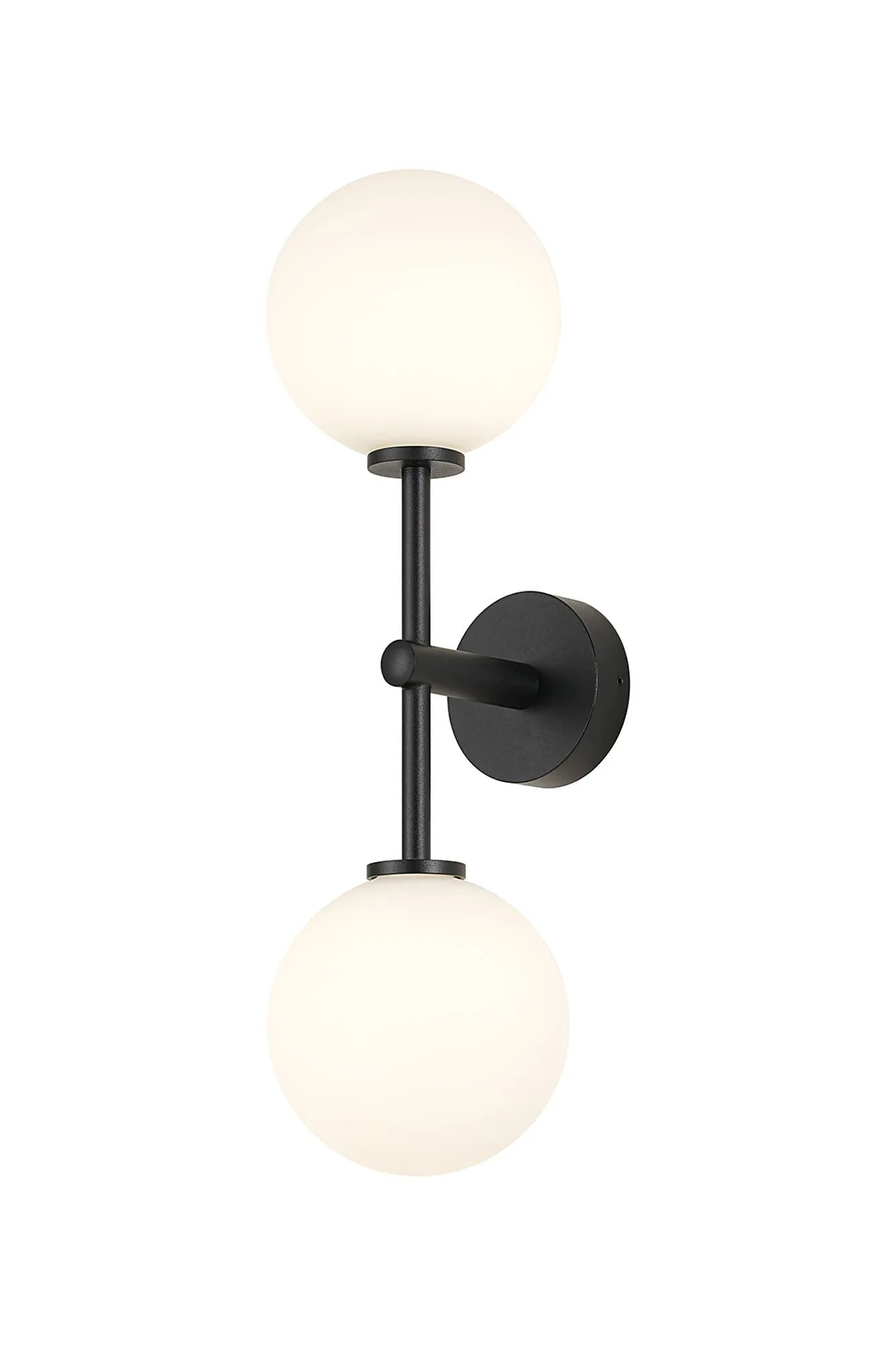 Whitley Medium Arm Wall Lamp 2 Light IP44 Satin Black/Opal Smooth Round Glass