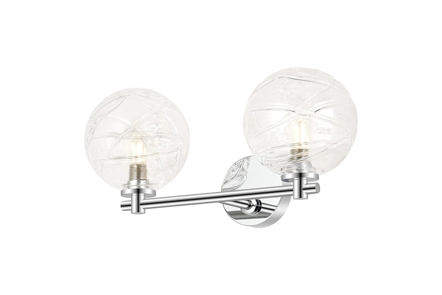 Whitley Short Arm Wall Lamp 2 Light IP44 Polished Chrome/Clear Dune Effect Round Glass