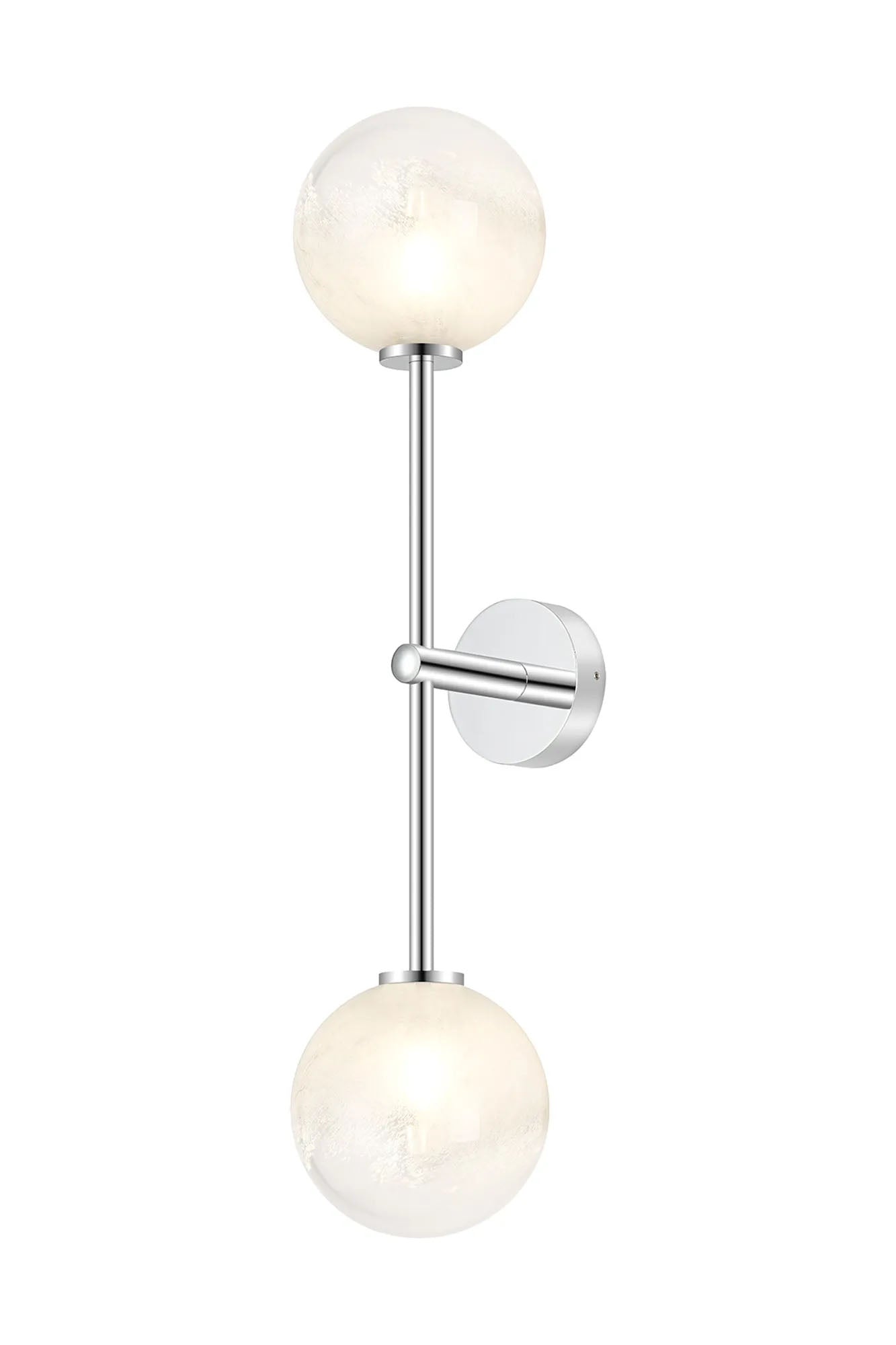 Whitley Tall Arm Wall Lamp 2 Light IP44 Polished Chrome/White Two-Tone Snow Specks Round Glass