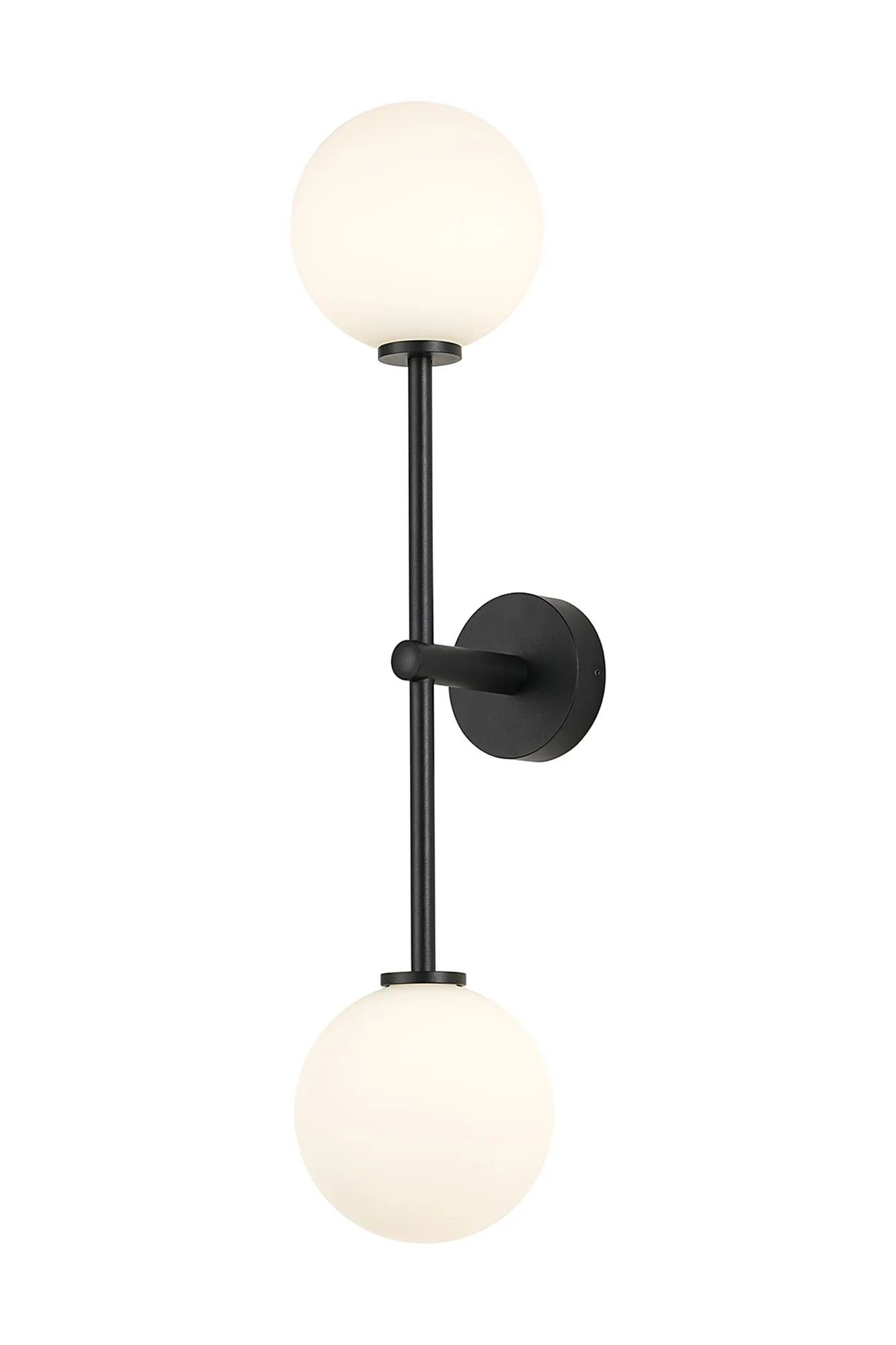 Whitley Tall Arm Wall Lamp 2 Light IP44 Satin Black/Opal Smooth Round Glass