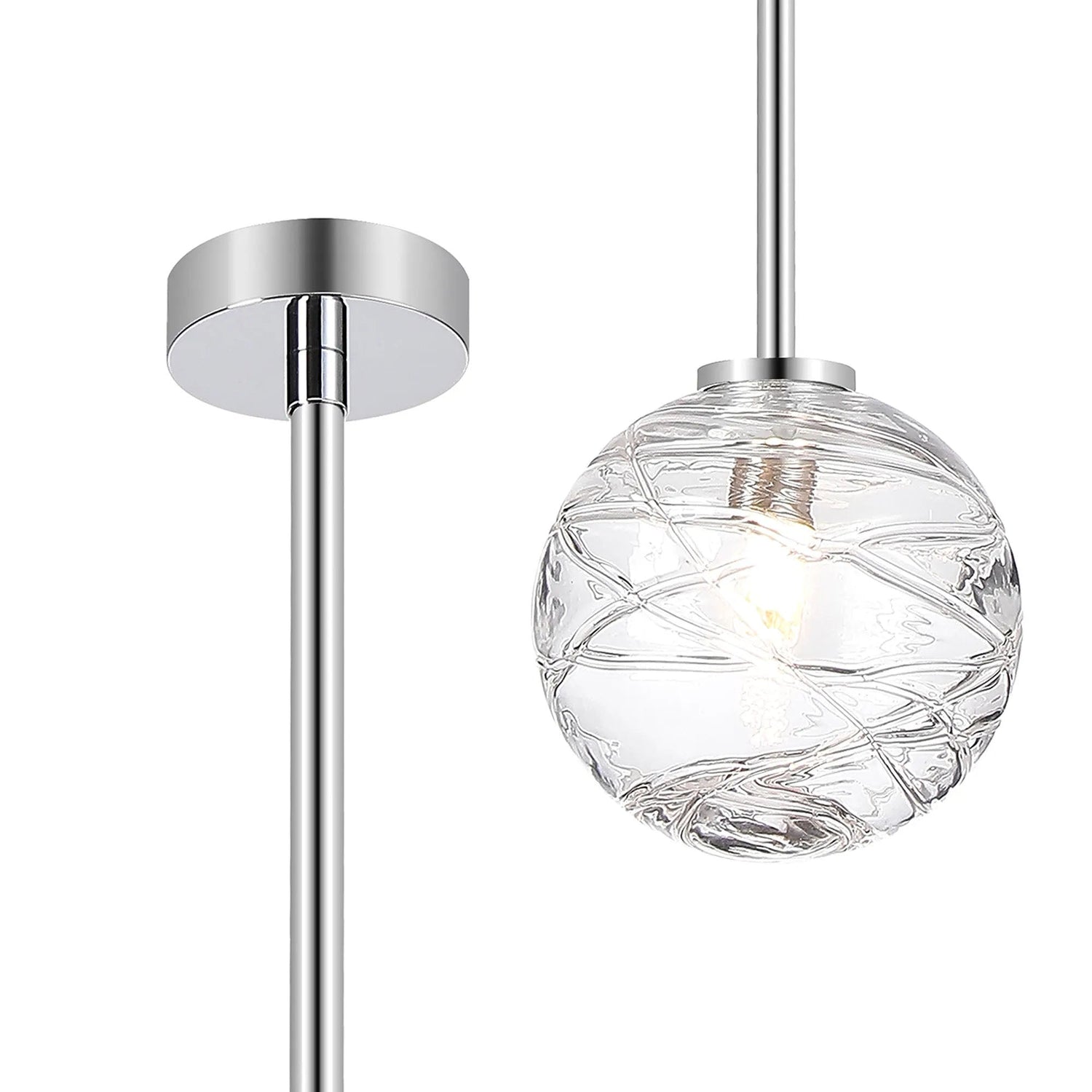 Whitley Telescopic Pendant 1 Light IP44 Polished Chrome/Clear Dune Effect Round Glass